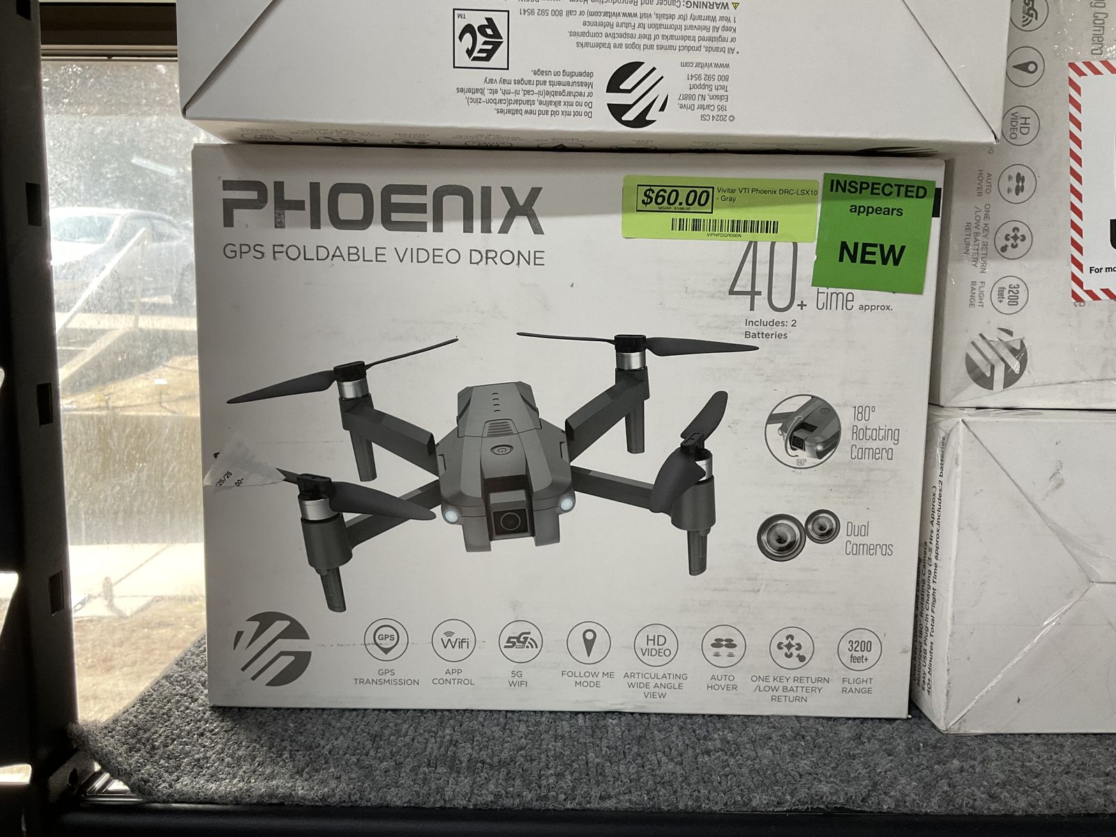 ApplePayVivitar VTI Phoenix Foldable GPS Drone with 1152p/2K camera, GPS-assisted flight, and foldable design. Up to 32–40 minutes of flight time with two batteries.