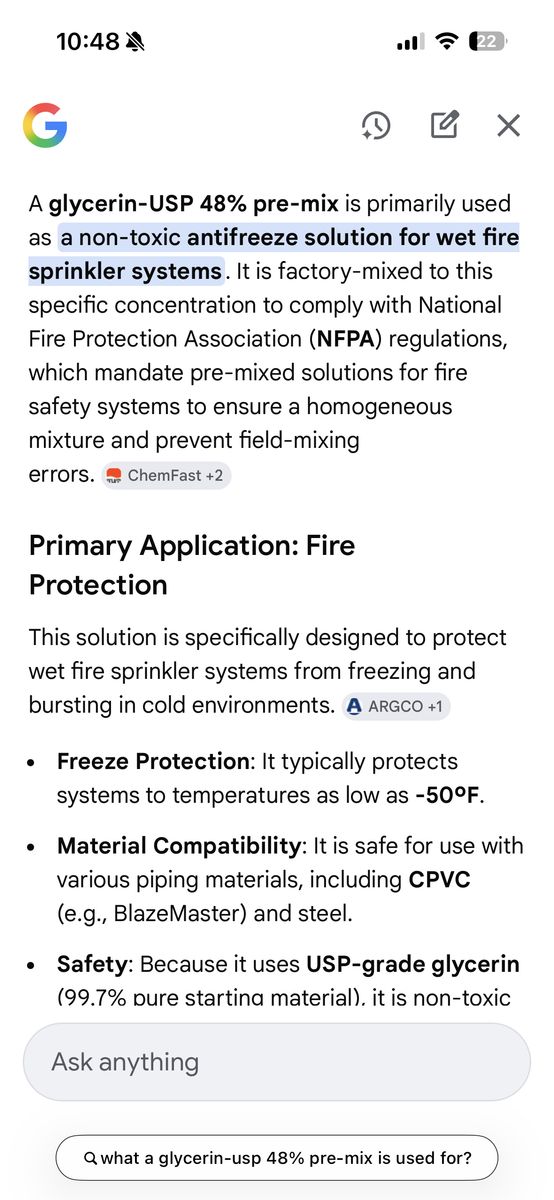 ApplePayThe 48% pre-mix is a specialized, diluted solution designed specifically for safety compliance in wet fire sprinkler systems.