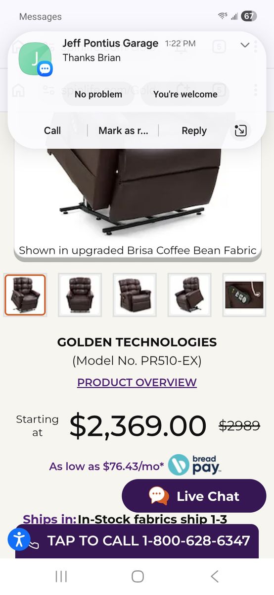 VenmoGolden Technologies Lether Power chair in great shape, everything works as it should, no holes or rips in leather. Price on image atached is for fabric we paid over 3k for chair originaly. Selling for less than half price. Call Brian 435-467-7366 first $1200 or best offer takes it home.