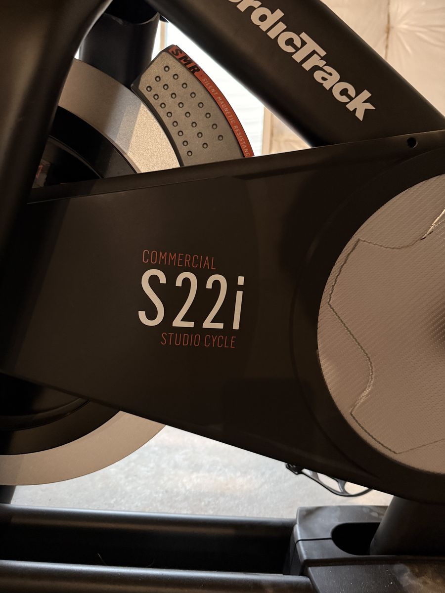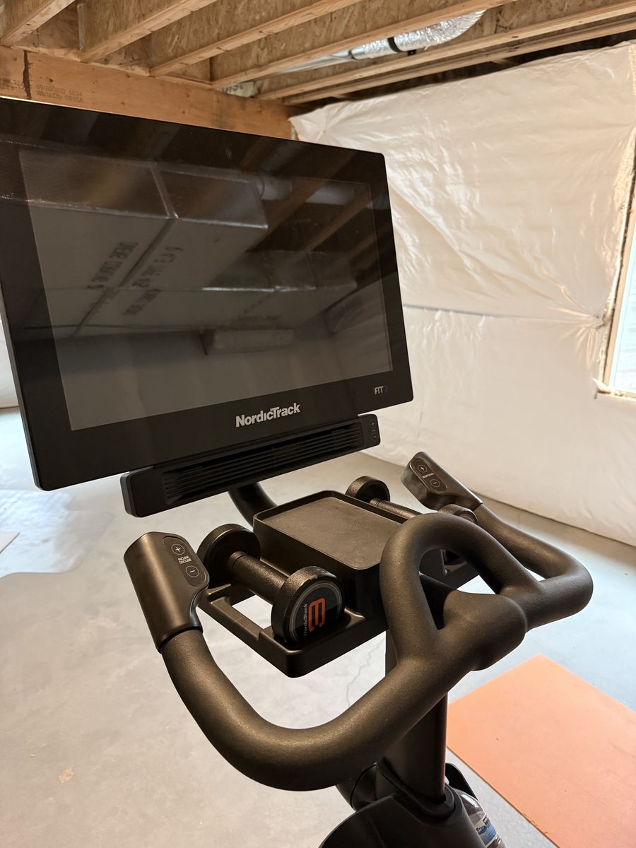ApplePayNordic Track Bike with iFIT capability, 3lb barbells, and adjustable seat for performance.