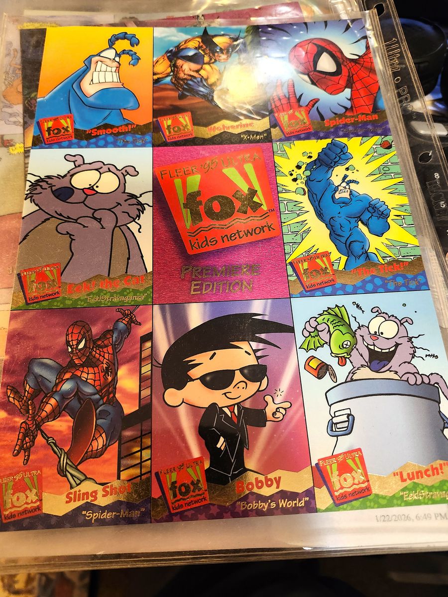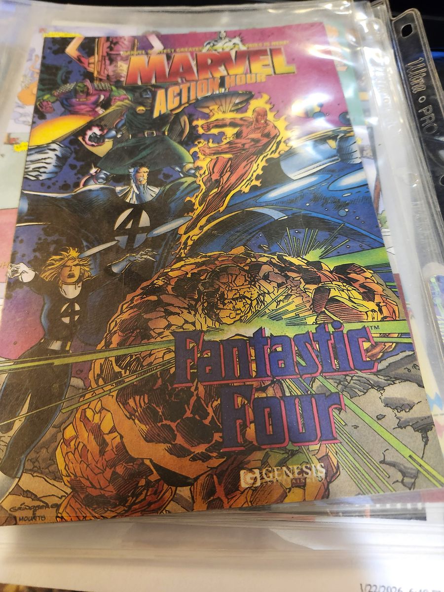 PayPalMTV Animation promo sheet, Fantastic 4 Ash Can type comic,, Beavis and Butthead promo sheet, Power Rangers promo sheet, Pin Ups uncovered promo cars and X Men Book mark. All of these have been put in a binder and kept that way till I too pictures.
