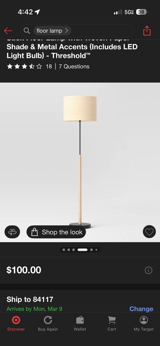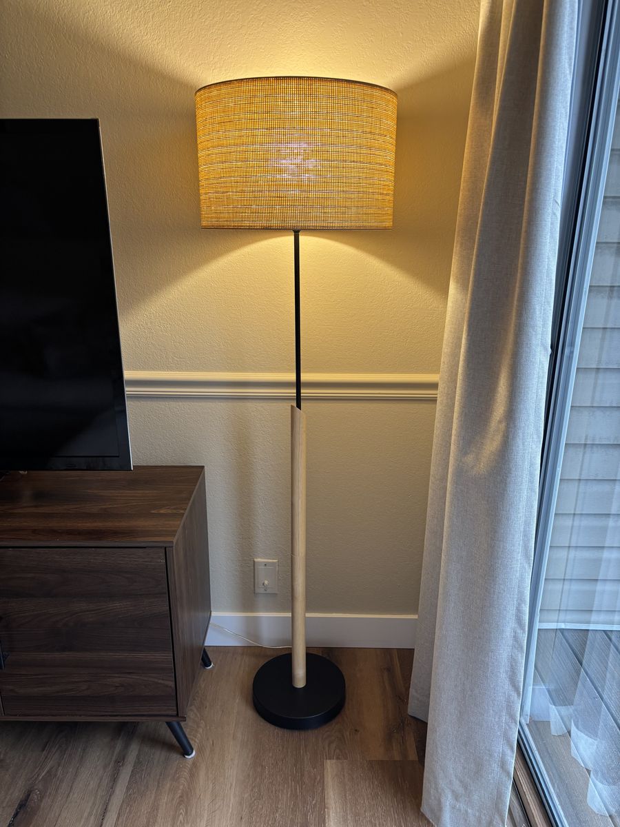Bring extra lighting and warmth to your space with the Stick Floor Lamp from Threshold™. Standing on a round base, this floor lamp features real wood with metal accents for a modern touch, and natural woven paper shade that produces a beautiful diffused light effect. The floor lamp features a one-way light setting, includes an 800-lumen LED lightbulb and easily lights up with a socket-turn knob rotary switch.