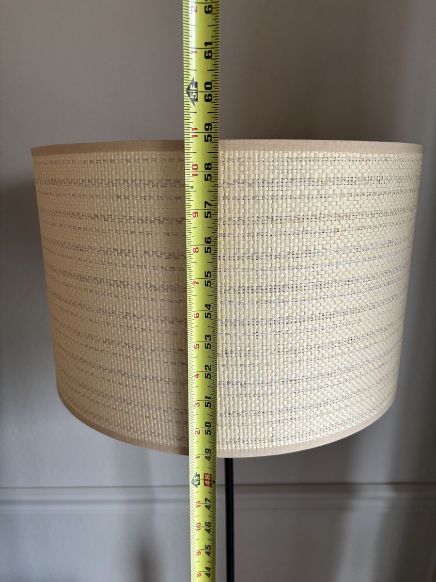 • Includes: 1 Floor Lamp With Shade, 1 LED Bulb • Weight: 13 Pounds • Shade Shape: Drum • Bulb Base Size: Standard Edison Medium Screw Base E26 • Lighting Shade Material: Paper • Lighting Body Material: Wood, Metal • Assembly Details: No Assembly Required • Assembled Dimensions: 58 Inches (H) x 16 Inches (W) x 16 Inches (D) • Shade Dimensions: 10 Inches (H), 16 Inches (W-top), 16 Inches (W-bottom) • Base Dimensions: 1.5 Inches (H) x 10 Inches (W) × 10 Inches (D) • Number of Light Bulb Sockets: 1 • Cord Covering: Plastic • Cable/Cord Length: 5 Feet • Maximum Light Bulb Wattage: 100 Watts • Industry or Government Certifications: ETL Listed • Lighting Switch Type: Turn Knob Rotary Switch • Number of Lighting Shades: 1 • Shade Bottom Depth: 16 Inches • Shade Top Depth: 16 Inches • Product warning: lighting: Use Only Non-Dimmable Bulbs • Light settings: 1-Way (On Off) • Switch Location: Lamp Socket • Battery: No Battery Used • Origin: Imported