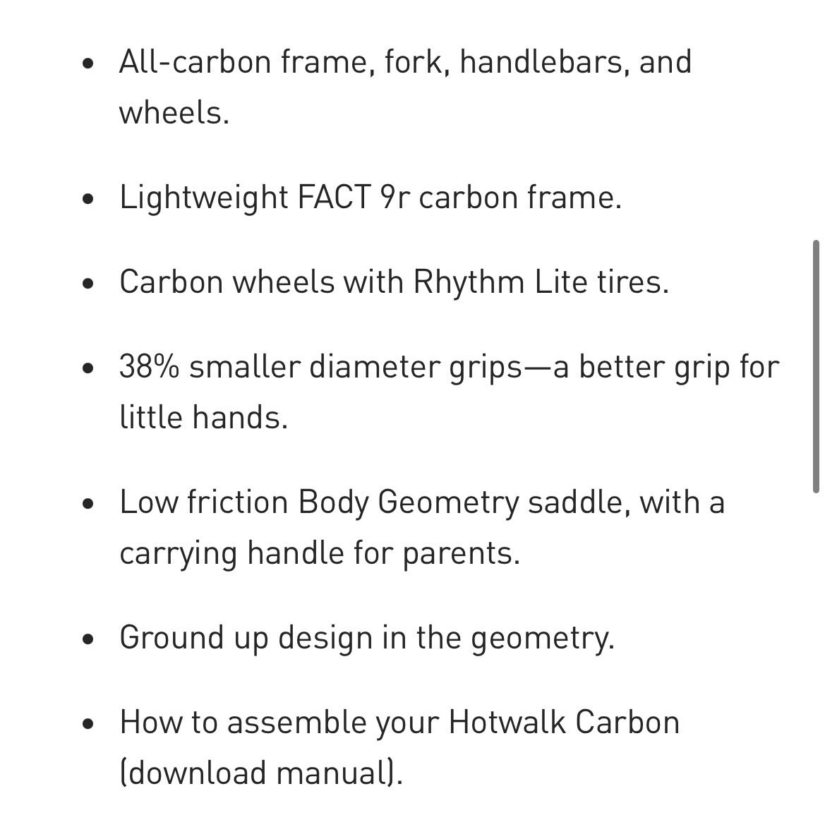 CashAppSpecialized Carbonfiber Hotwalk. This was the best Hotwalk bike! The carbon fiber frame is extremely light which makes it so much easier to balance and steer. Has some scratches on the frame from use. Tires still in great condition. Originally $1000