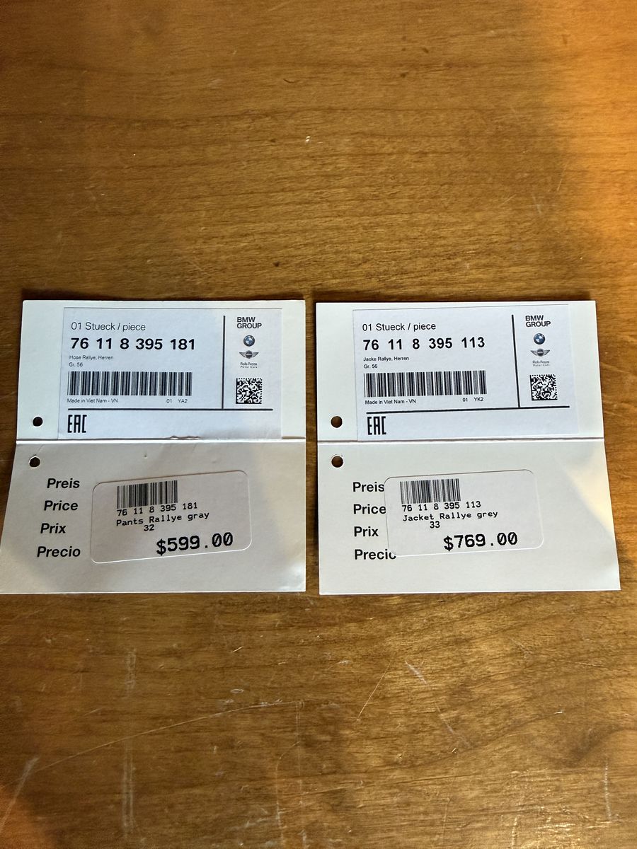 VenmoSelling my BMW Ralleye Adventure Motorcycle Jacket and Pants. Comes with rain liner for pants and rain cover for jacket. I am 6 feet and 200 pounds. Wear a size large jacket and 36 size pants. This fits me perfectly. Jacket is size L/XL and pants are size 36 waist. (Euro size 56) This is a medium-length touring jacket and pant set. Features a collared neckline, button, zipper, and velcro closures. Multiple pockets. Adorned with the BMW logo, it offers Level 2 CE protection for the back, elbows, and shoulders, hips and knees. Ideal for all seasons and includes a rain suit. Call or text Mark if interested. Asking $350