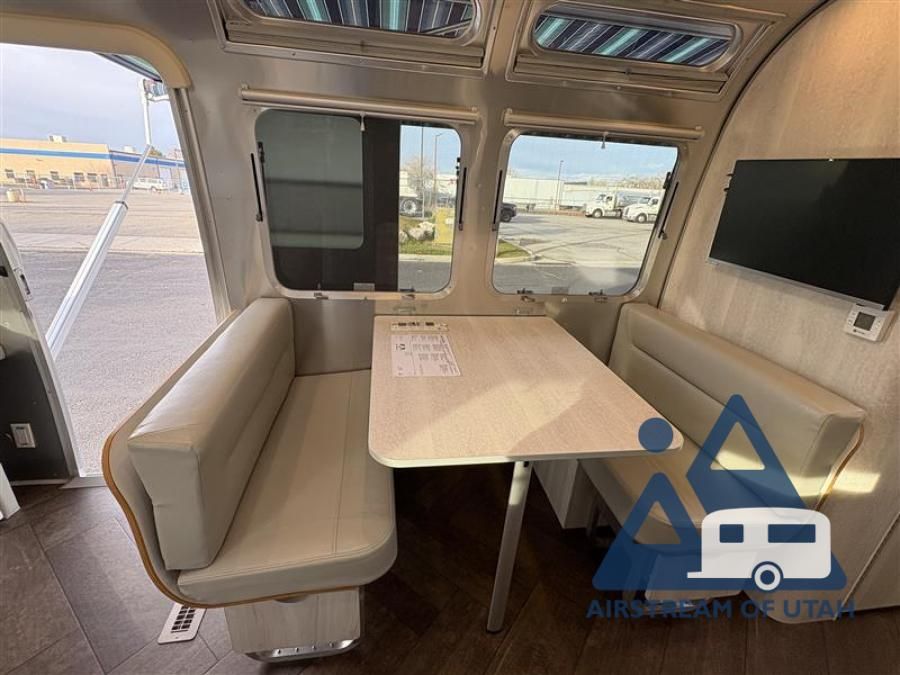 Every time you step foot into the Airstream International travel trailer, you will feel as if you are breathing in a breath of fresh air! The fresh coastal décor was inspired by the waterfront, and the stylish interior delivers a relaxing environment and comfortable luxury. The panoramic windows increase the amount of natural sunlight that streams through to the interior, but they also have blackout shades that you can close whenever you need a darkened room. The beautiful handcrafted marine-grade Lite-Ply laminated cabinetry is an attractive base for the overhead storage lockers that have sliding doors and LED lighting. The dimmable interior LED lighting will create the perfect amount of illumination for you as you spend time indoors. The exterior has excellent features as well with its enclosed aluminum insulated heated underbelly, unique front door key with heavy-duty deadbolt, optional solar package, solar front window protection, and exterior shower with hot and cold water.