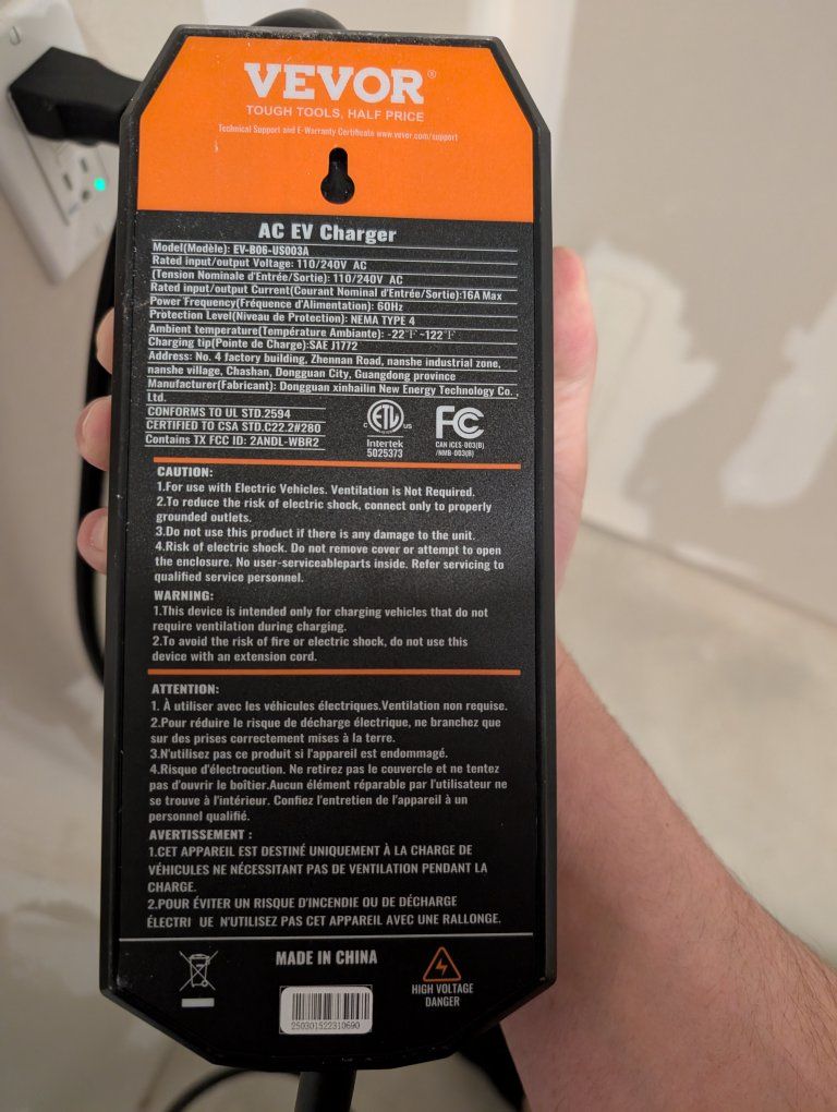 GooglePayVEVOR EV charger, works great. We updated to a 240v and no longer have use for it. Asking $80. Can charge up to 7 miles an hour on a regular outlet. Comes with NEMA 6-20 plug, and a regular wall outlet adapter. Only used for about 5 months.