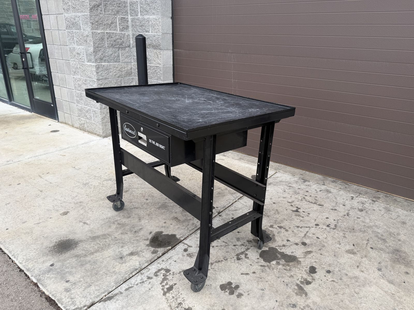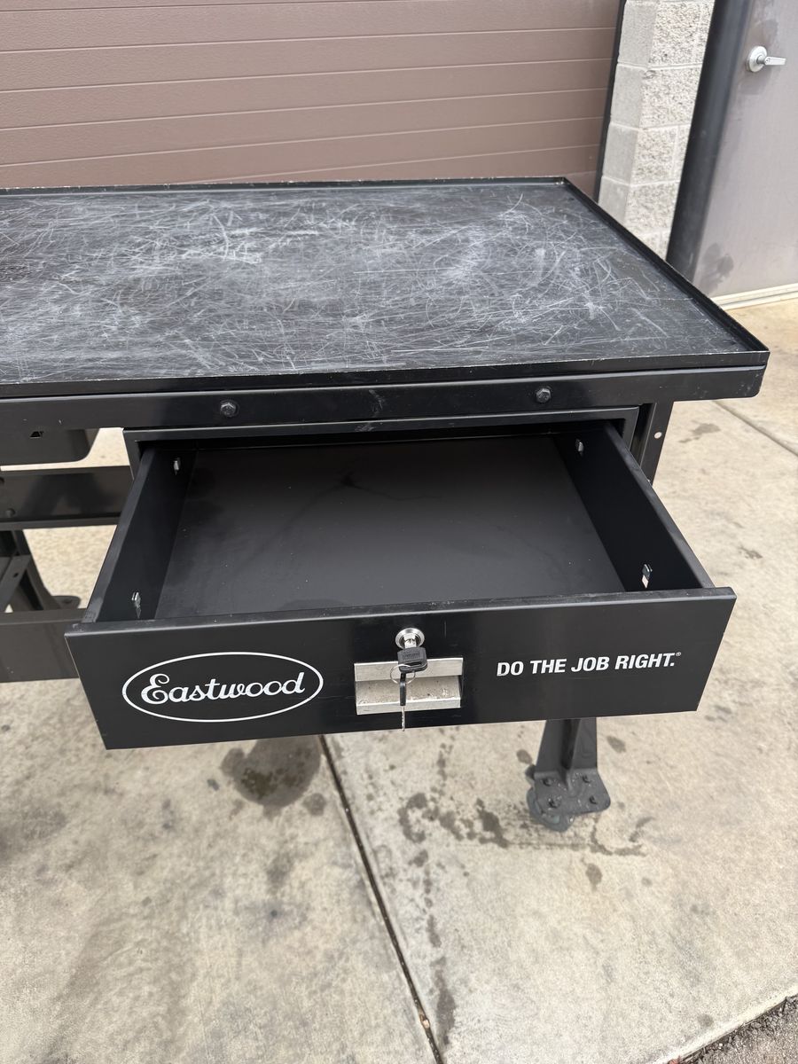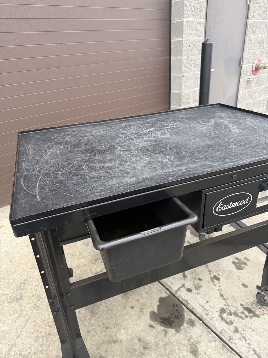 Used Eastwood tear down table. Has wheels. Has one drawer and a fluid catch. Good shape.