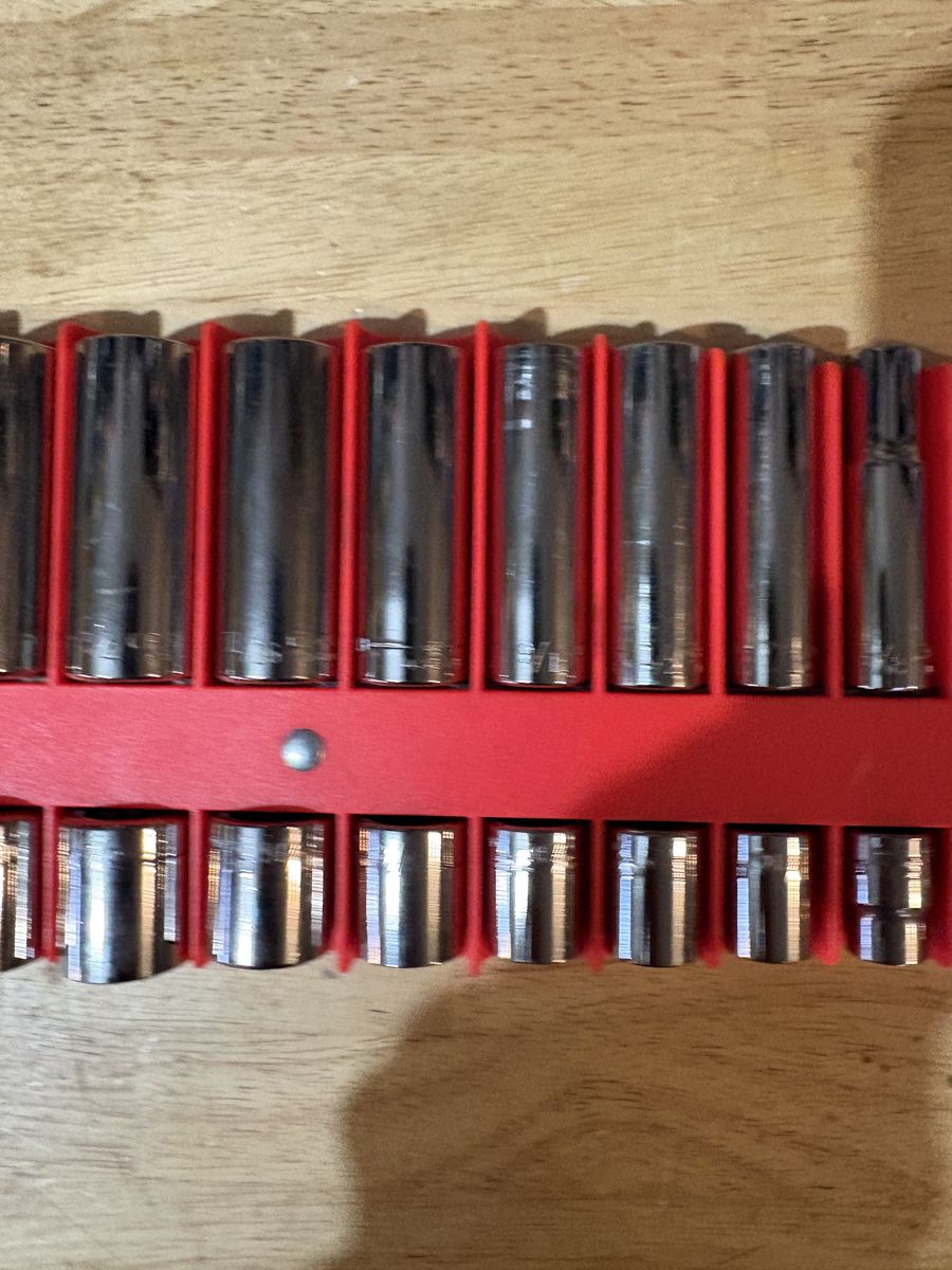 High quality and excellent condition 3/8 drive 12 pt standard / fractional socket set in excellent condition suitable for collectors or practical users. This set was at the tail end of the made in USA craftsman tools produced here in the US. I almost never use standard sockets anymore. The set includes 13 shallow sockets 1/4 through 1. The deep socket set includes 11 sockets 3/8 - 1. Also includes a Made in USA Lisle magnetic socket tray organizer.