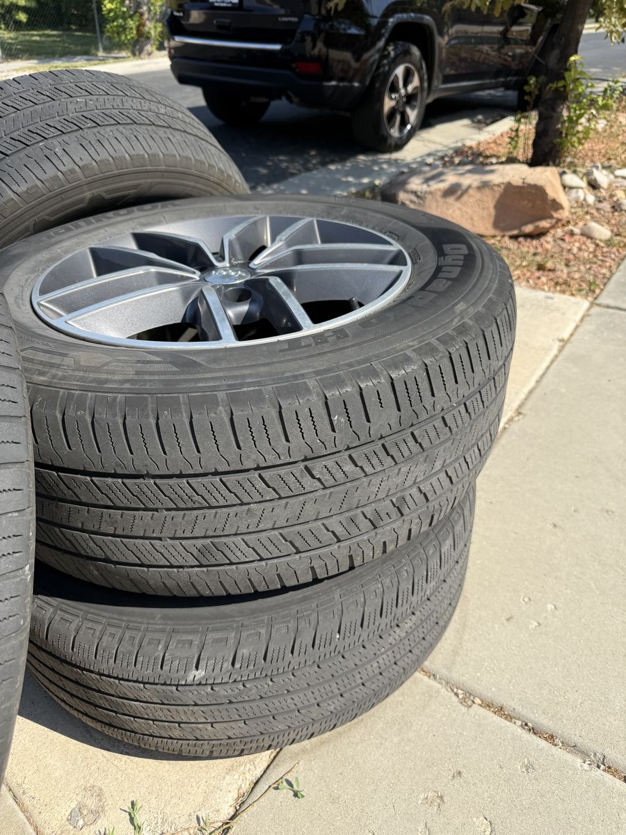 ZelleSelling a full set of OEM rims and tires that came off a 2017 Jeep Grand Cherokee Limited.