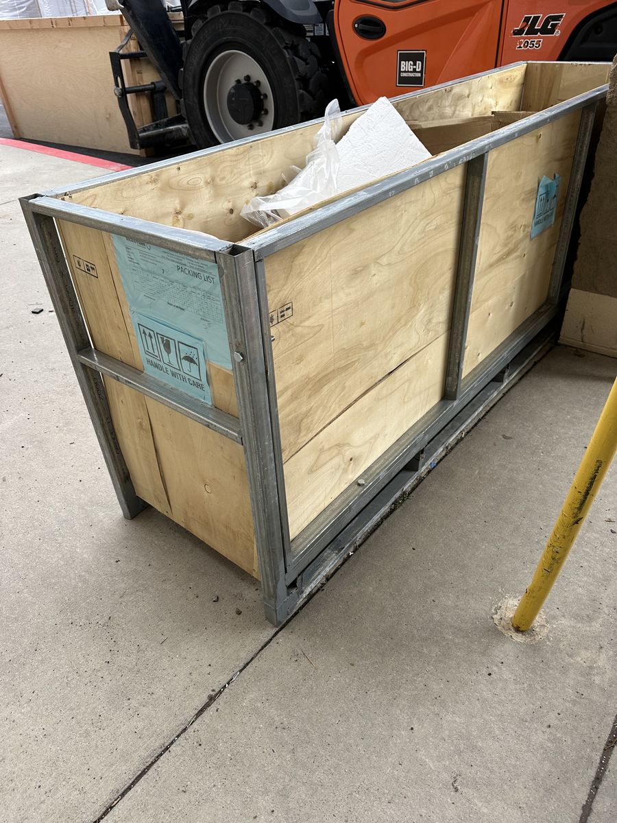 ApplePayHave 3 square boxes and 6 rectangular boxes. Wood and metal. Great for storage or planter boxes. Really strong welded and bolted. 6 foot by about 2 foot and some are 4x4 foot