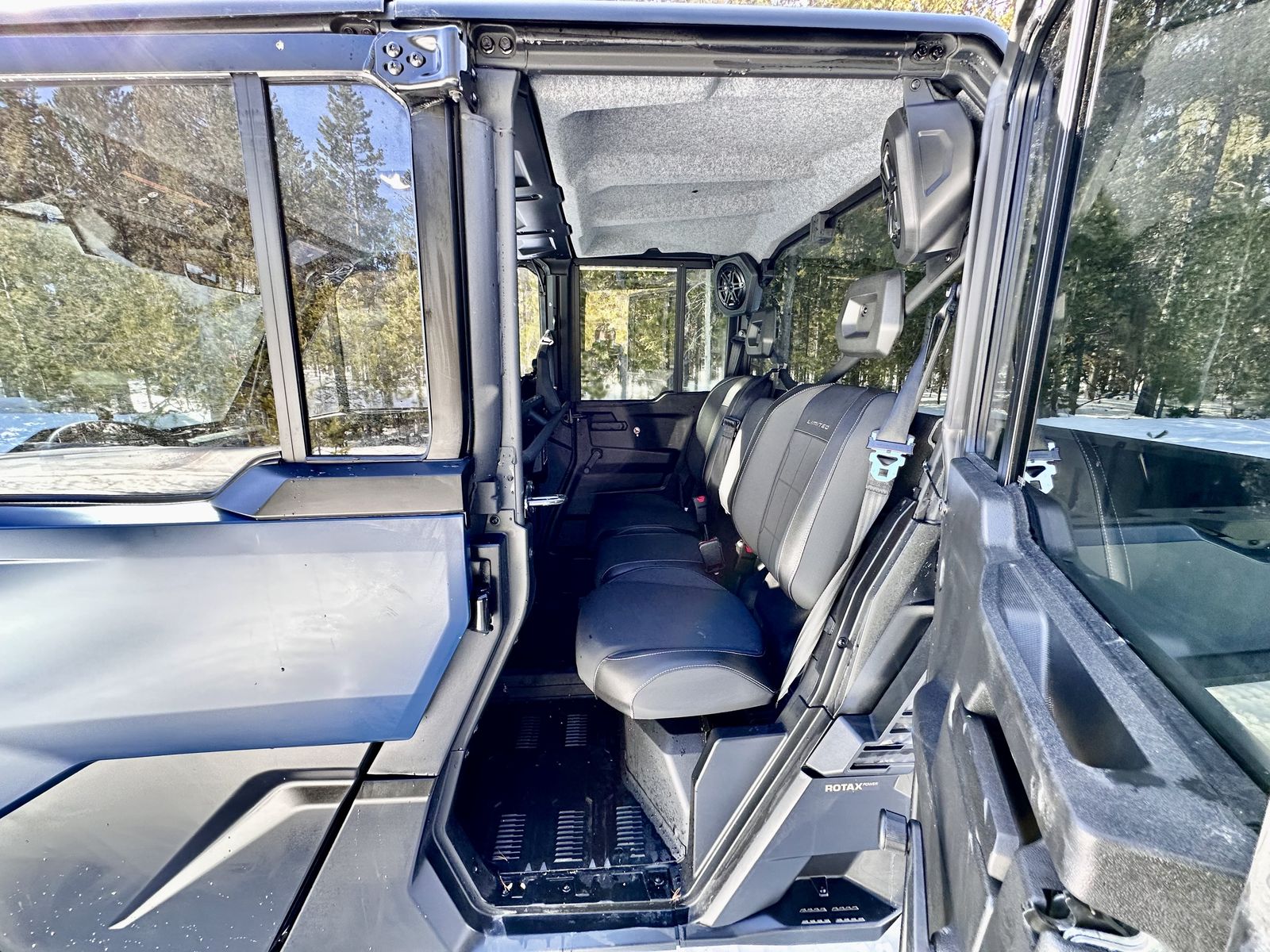 2026 Can-Am Defender Max HD101 Limited fully enclosed with heat, AC, 10.25 in. touchscreen display with GPS and backup camera, JL Audio roof system, a 4,500 lb. synthetic cable winch.