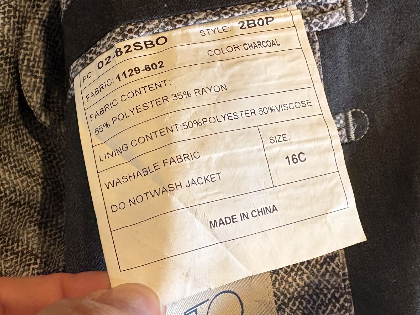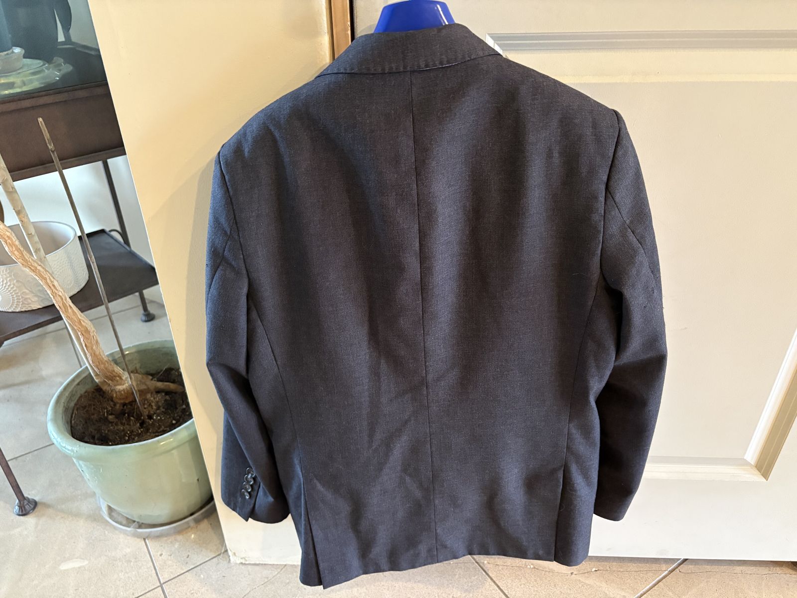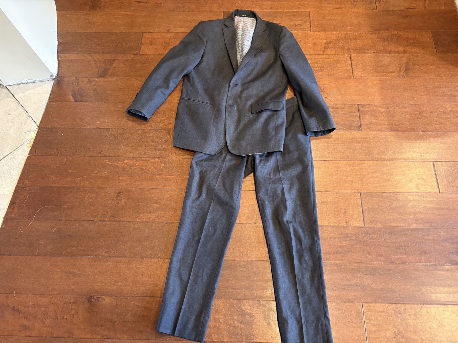 I have a suit that my son just outgrew. It says size 16B. I think my son was about 5 feet tall and 110-115 pounds when he wore it. It’s charcoal gray and in good condition (needs pressed) except for a couple of loose stitches on the butt (see the last picture). It was purchased at Mr Mac for about $200. See my other ads for jewelry, artwork, home decor and more.