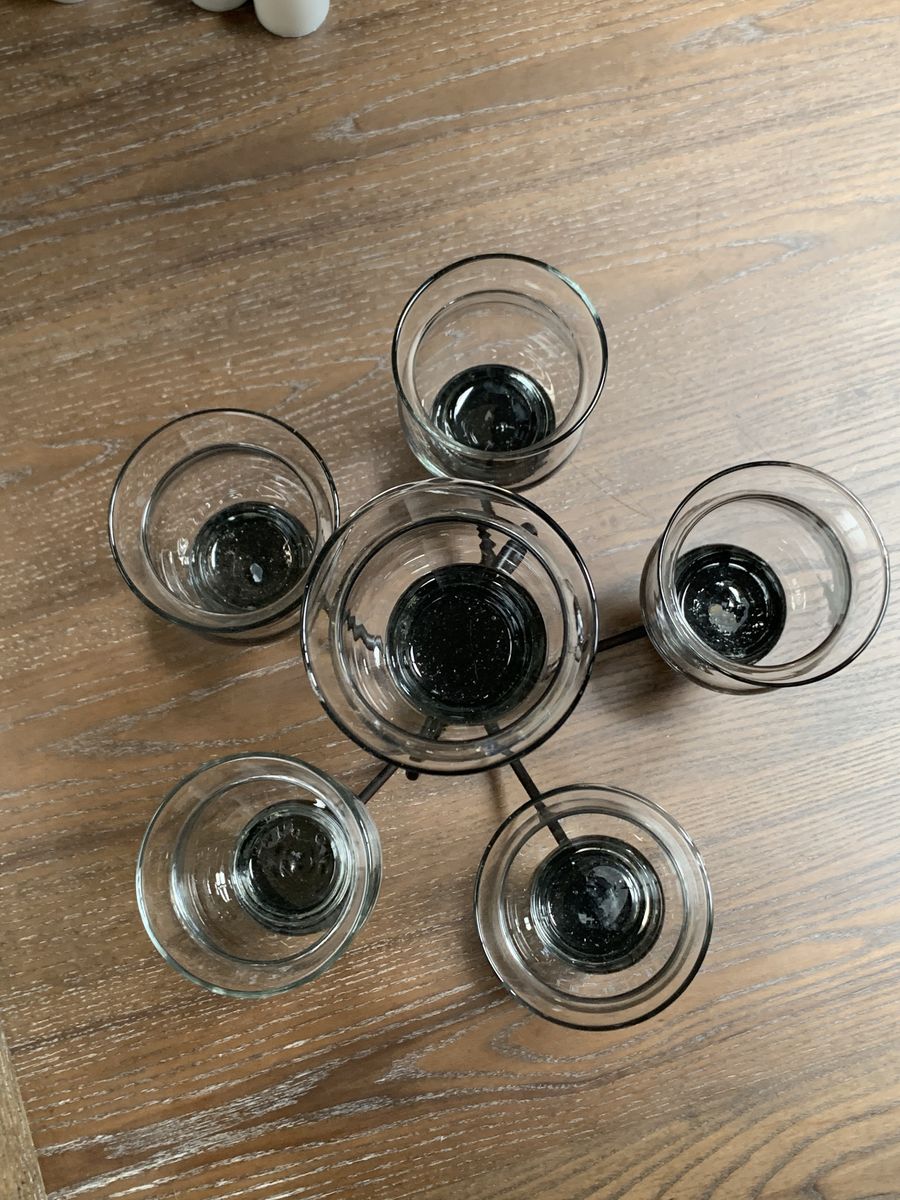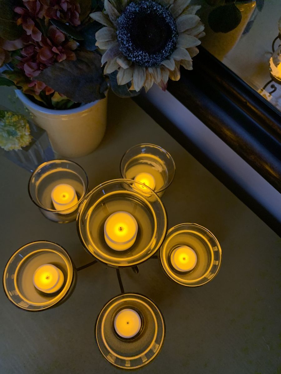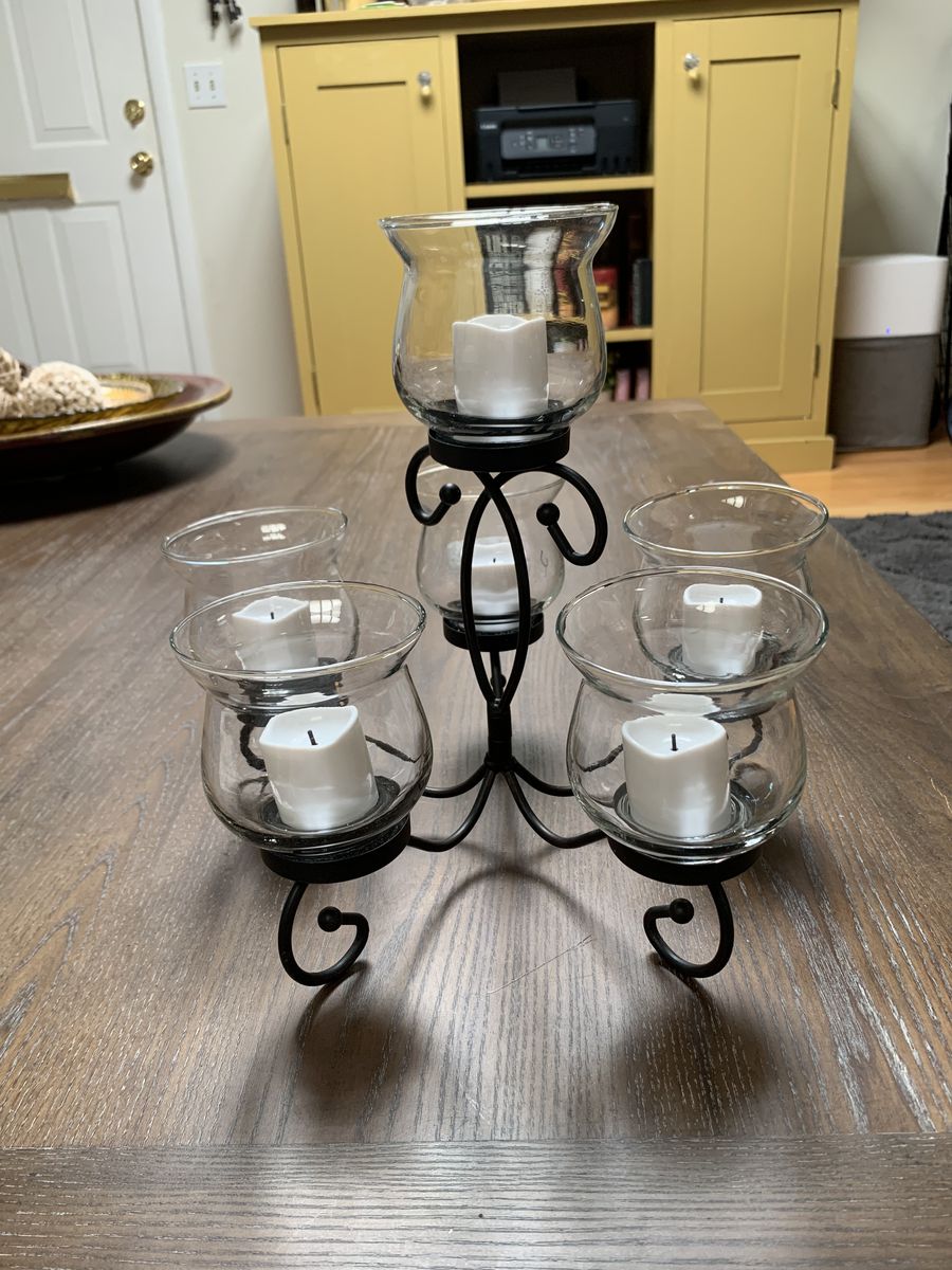 VenmoUse as a centerpiece or as a decor accent. The Candelabra is 10 3/4”H x 12”W. Votives are 3 1/2”H x 3 1/4”W. Clean. Hold with Venmo. Non-smoking/No pet home.