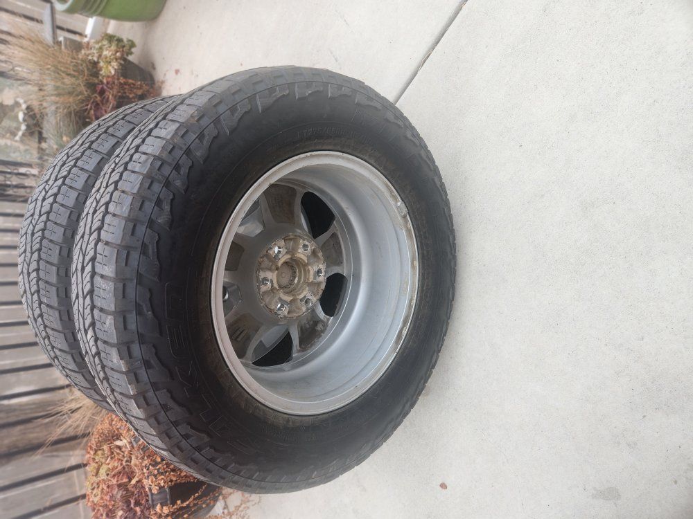 VenmoUsed tires still have some good tread on I got a picture of the tire size on the their 18-in rims. takeoffs from other truck don't need make great spares. get rid of the space saver Tire. 2 available