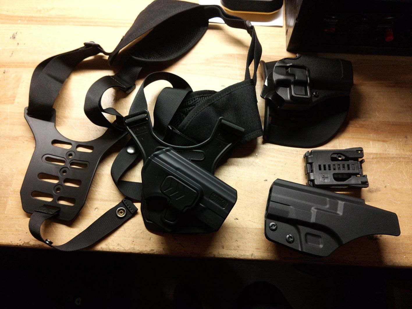I have a variety of holsters that fit a S&W 9 mm or maybe others.Inside holster,Shoulder mount holster.Outside holster.$20 for all