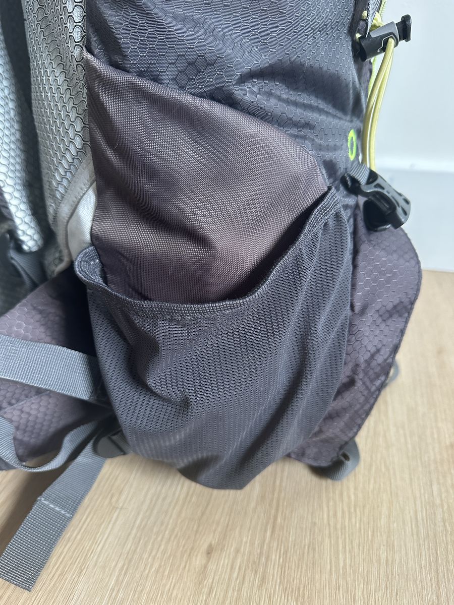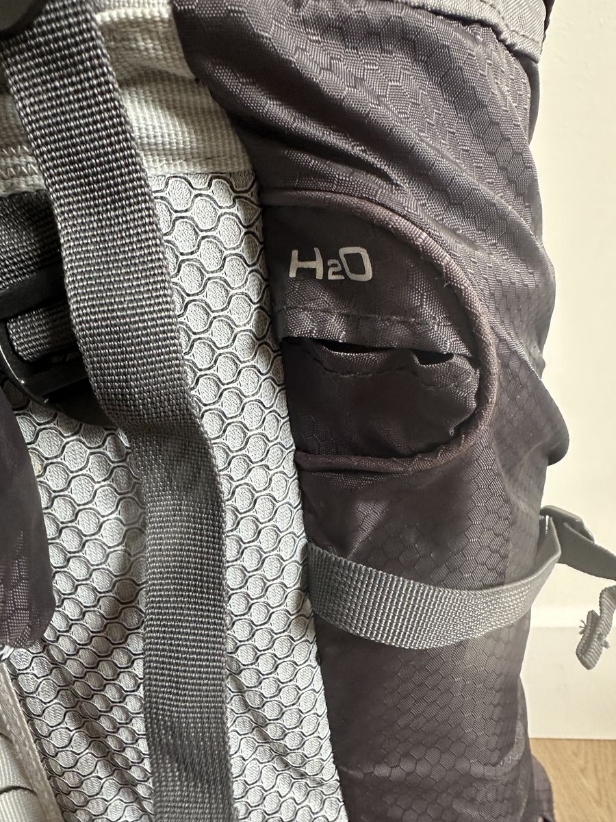 Key features incude: Top loaded main component with secondy access through a rear zipper, a separate lower compartment, an integrated tuck-away rain cover in a velcro pocket on the bottom, plenty of tie points integrated water bladder sleeve, and a top cover with a zipper pocket.