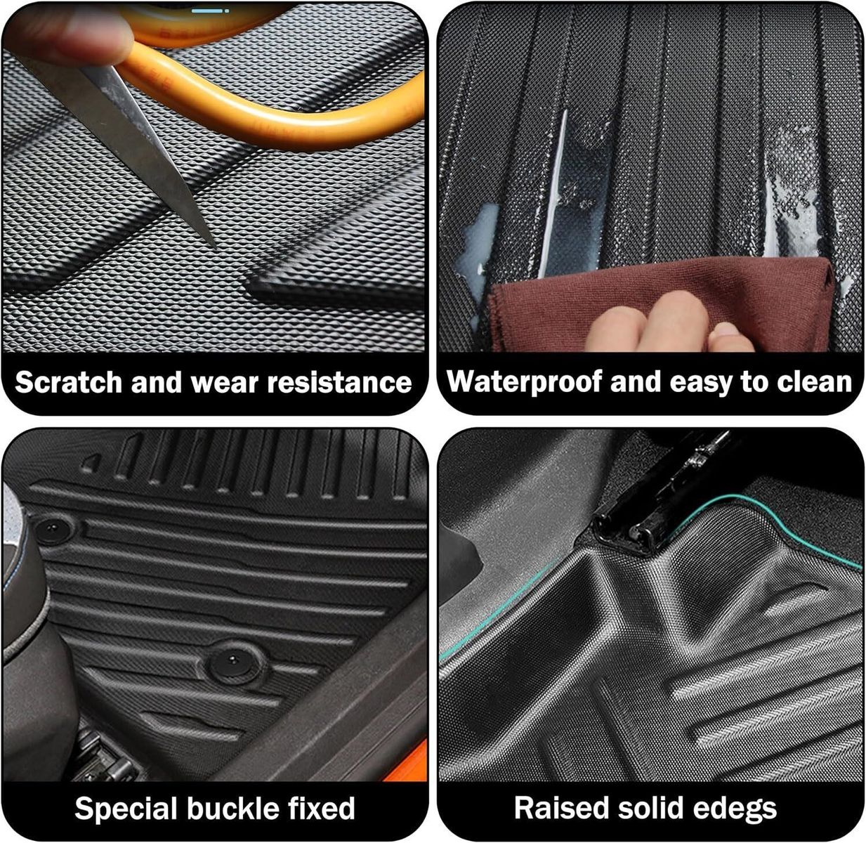 FITMENT This Floor Mats are perfect for the 2024 2025 Chevy Trax. Package includes: driver's seat, passenger seat, rear seat, backrest, trunk mat MATERIAL Made of high quality TPE, environmentally friendly, odorless, thick texture, friction resistance, floor Mats edge design increase height, prevent dropped mobile phone keys from leaking out. The buckles are molded from the original car and fit perfectly with your car interior floor FUNCTION Provide full protection for the floor and trunk of your Trax, when there are crumbs and spilled coffee, just clean it easily with a wet towel, or remove it from the car and rinse it with water, saving you time and cost. The strong three-dimensional sense will enhance the overall beauty of your Chevy Trax and upgrade your car's interior INSTALLATION The floor mat hole buckle to the floor of the car, direct installation, do not need other tools, fast and convenient, this is an easy job. The transportation process will inevitably appear crease, with a hair dryer heating a moment can be restored, Zero affect to your car's accessories