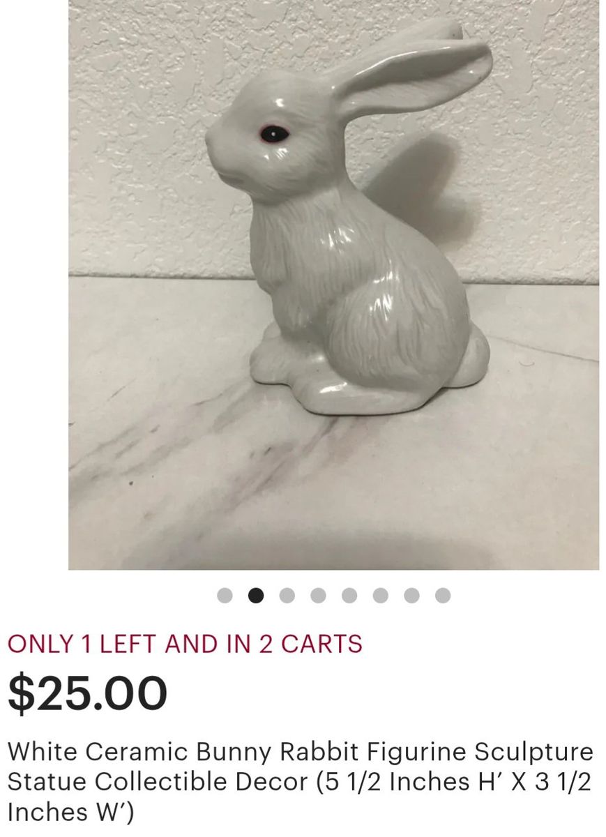 Vintage 1980s ~ cute home or garden decor or use for Easter too ~ laying bunny is 4" tall x 6" long ~ sitting bunny is 5" tall x 4" long ~ padded bottoms to prevent surface marring ~ in perfect condition having been rarely displayed in an elderly lady's home & then stored for many years ~ please see photos for more info & online ad price comparison of $25.00 for ONE rabbit.