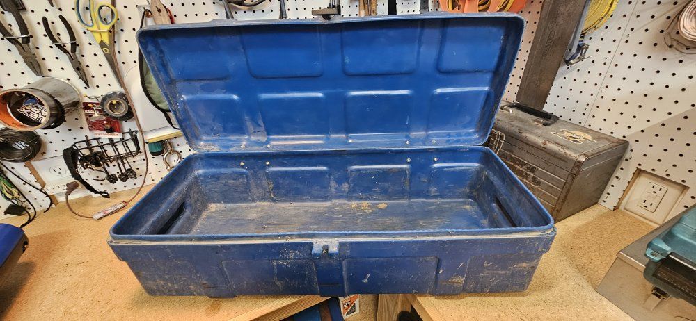 The box measurements 30" L x 12" W x 8" D. It's solid and works great. Great for your 4 wheeler or SxS. $20.00 cash only, local only, you pick up.