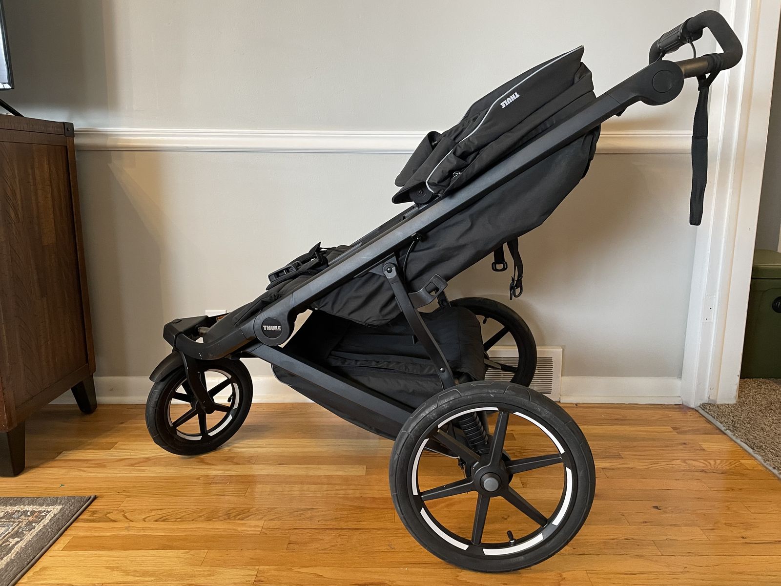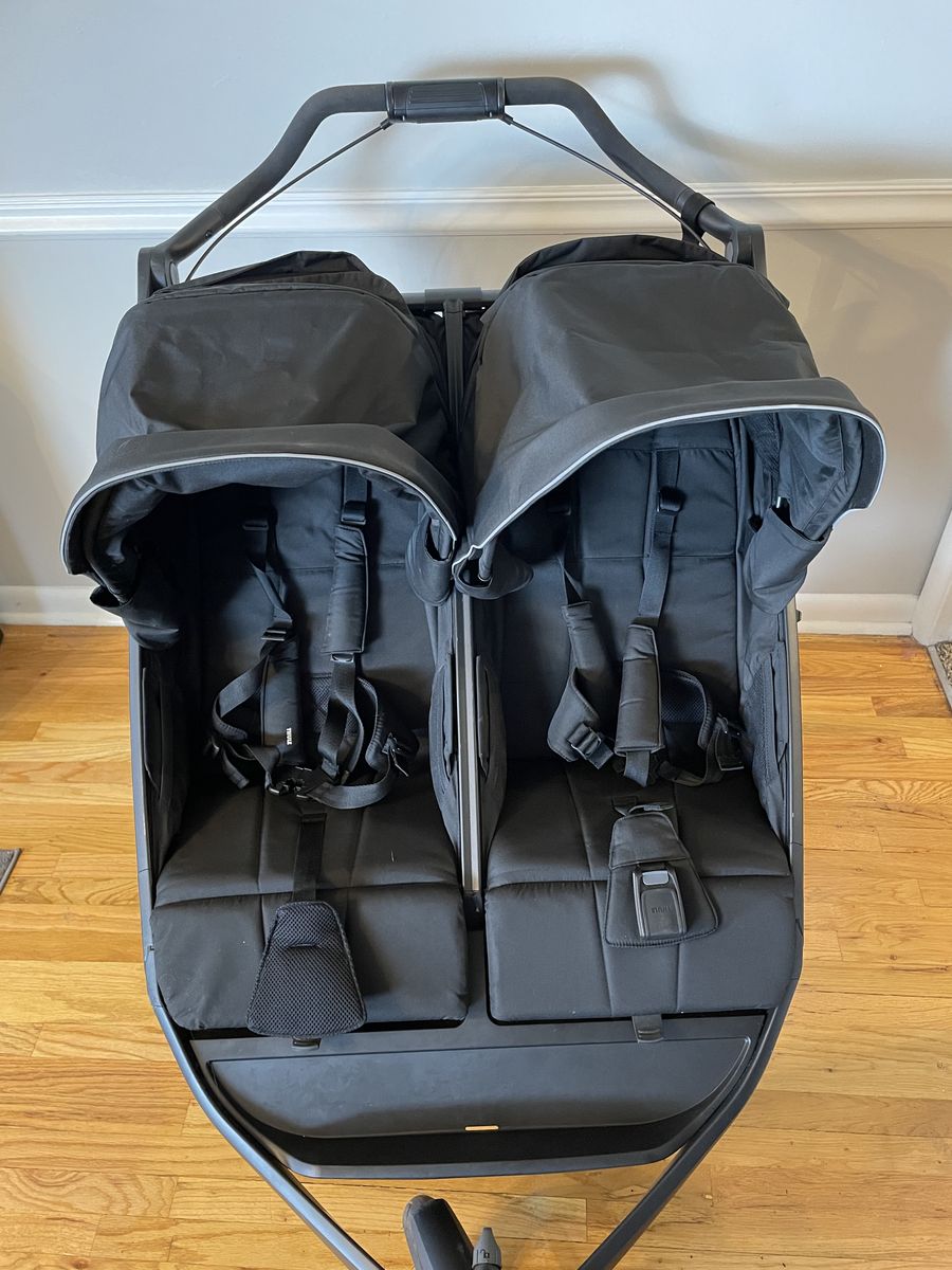 CashAppThule Urban Glide 3 Double, black. This stroller was only taken around the block once. Has a couple of scratches/scuffs from shipping. Great for all terrain, even going in dirt trails. Smooth ride and has a hand brake which is super handy. Originally $1000