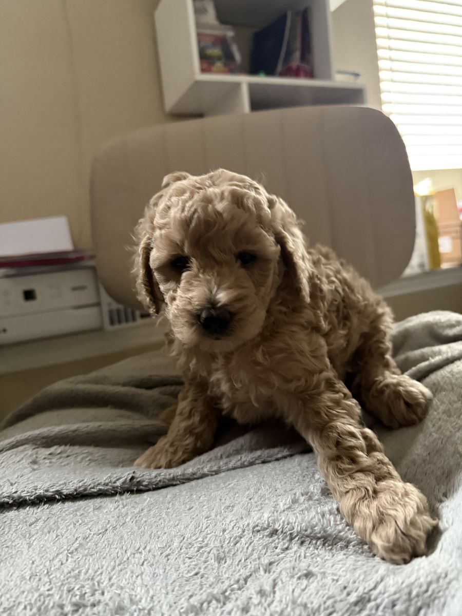 VenmoAdorable Micro Goldendoodle female puppy available! This sweet cream-colored girl is expected to weigh between 9 and 15 pounds as an adult. Her mother is an F1B 14 LBS Goldendoodle. Her dad is a micro Goldendoodle 9 LBS hypoallergenic and are non shedding . She was born on January 25. She will be able to go to their forever home march 20. She will have dew claws removed , first set of shots Perfect for families or anyone looking for a small, loving companion. If you’re interested, please contact me at 385-389-7145 for more details. Don’t miss out on your new best friend!