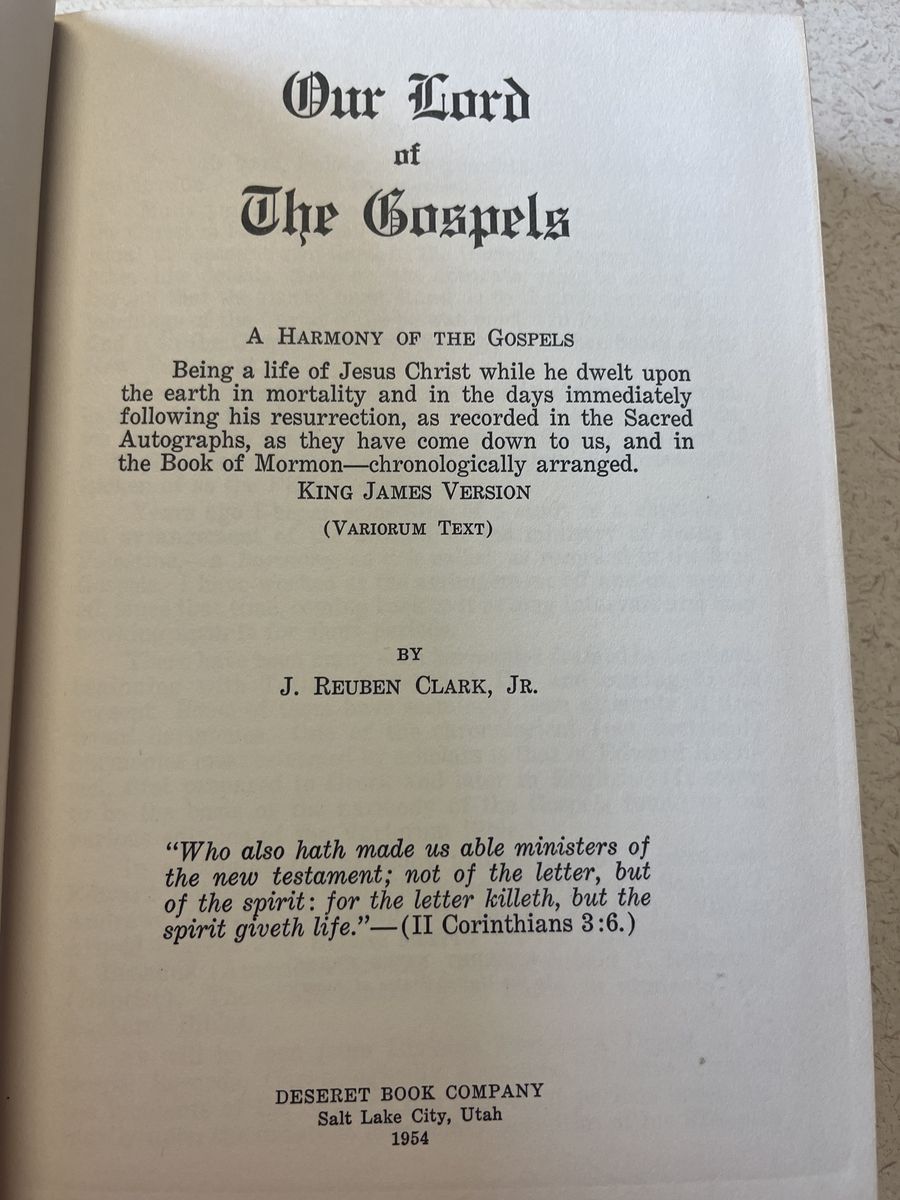 Our Lord of the Gospels by J. Reuben Clark 1954 1st Ed LDS
