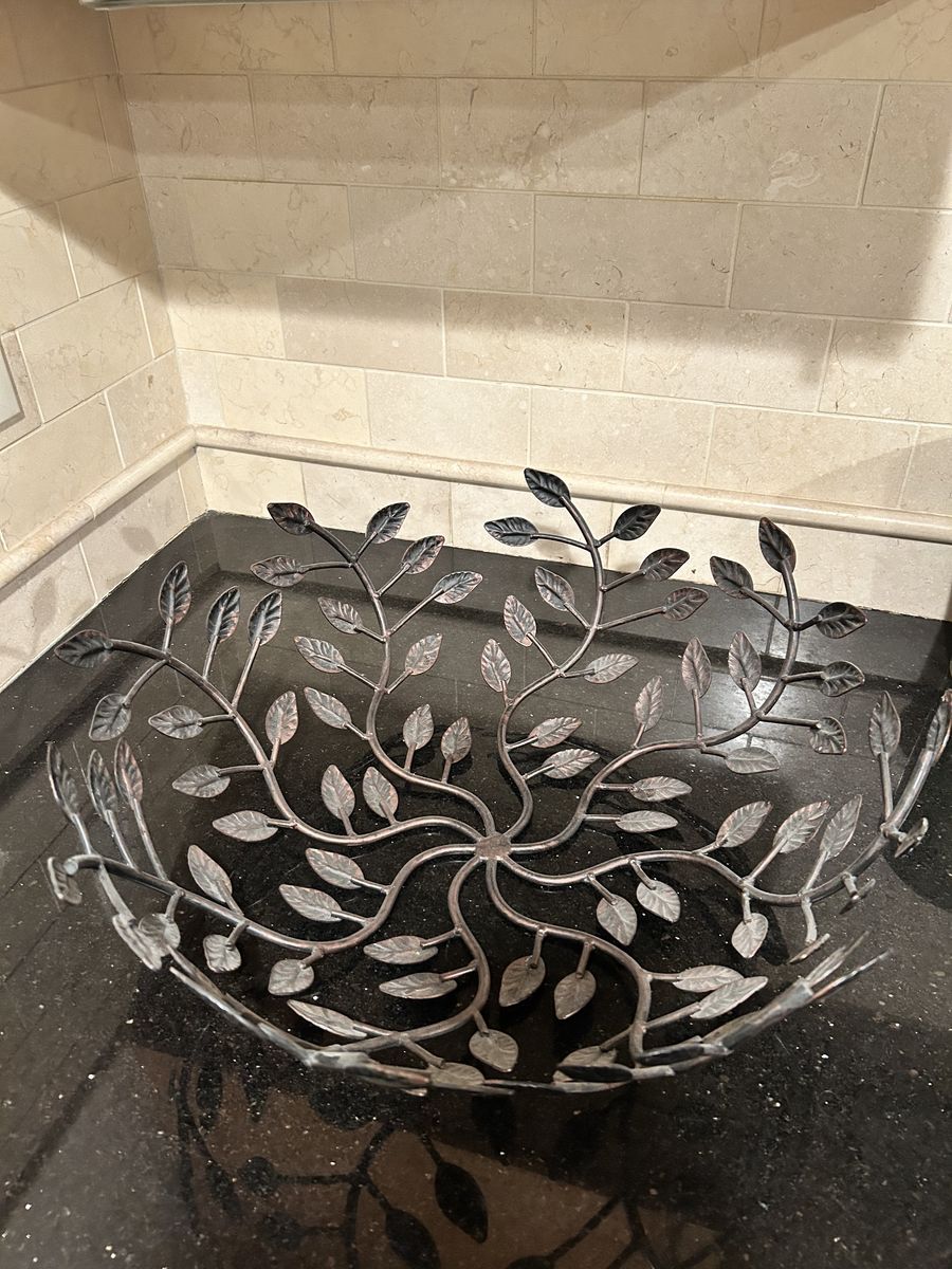 ApplePayOpen basket with metal leafs Use for decoration Top of basket measures 18”