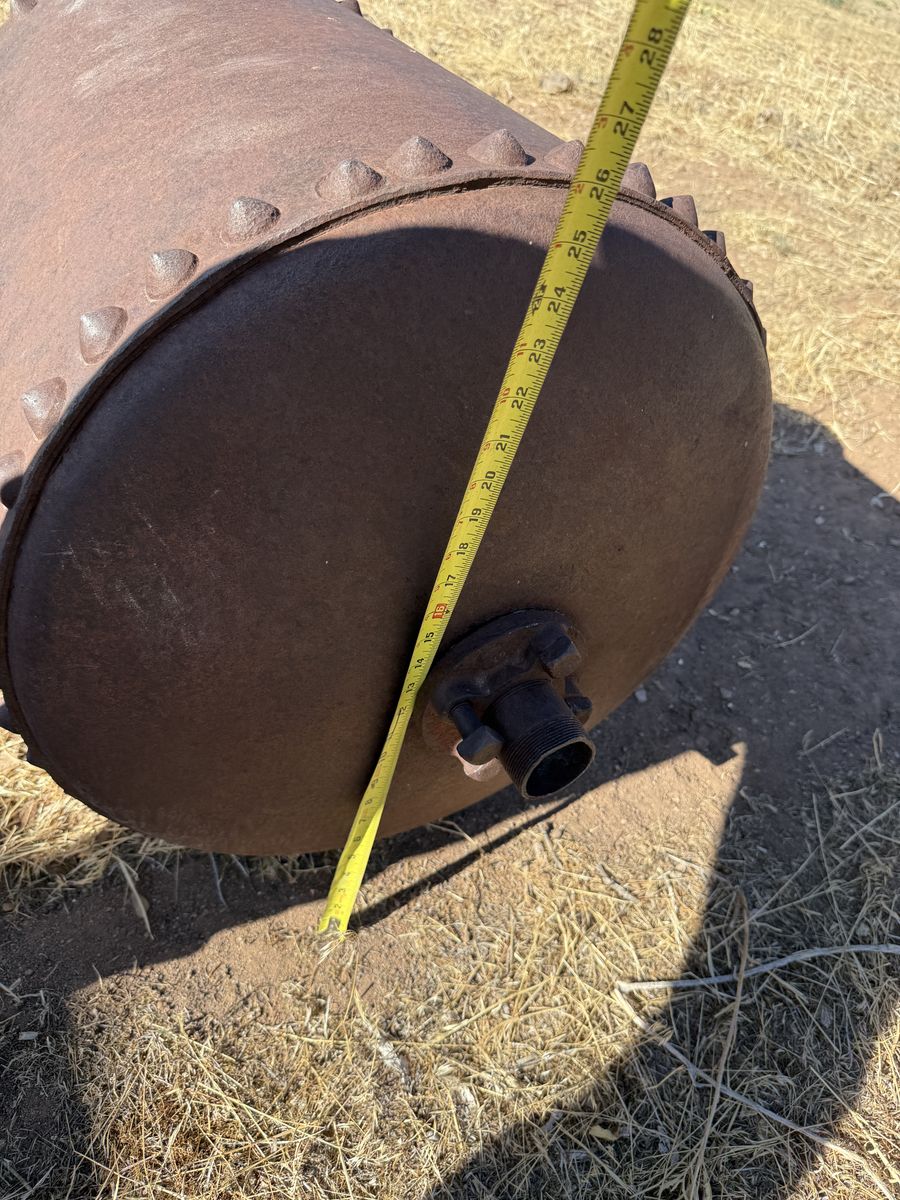 Antique pressure vessel for sale. I dont know how old this tank maybe but by quessing im thinking late 1800s or early 1900s. Ild quess it for being off from a steam engine. The measurements are on the photos, this is a very vell made tank. It is not rusted out at all. it was made from 3/8" steel so itis a bit heavy. Ive got a cherry picker for helping somone load it. $500