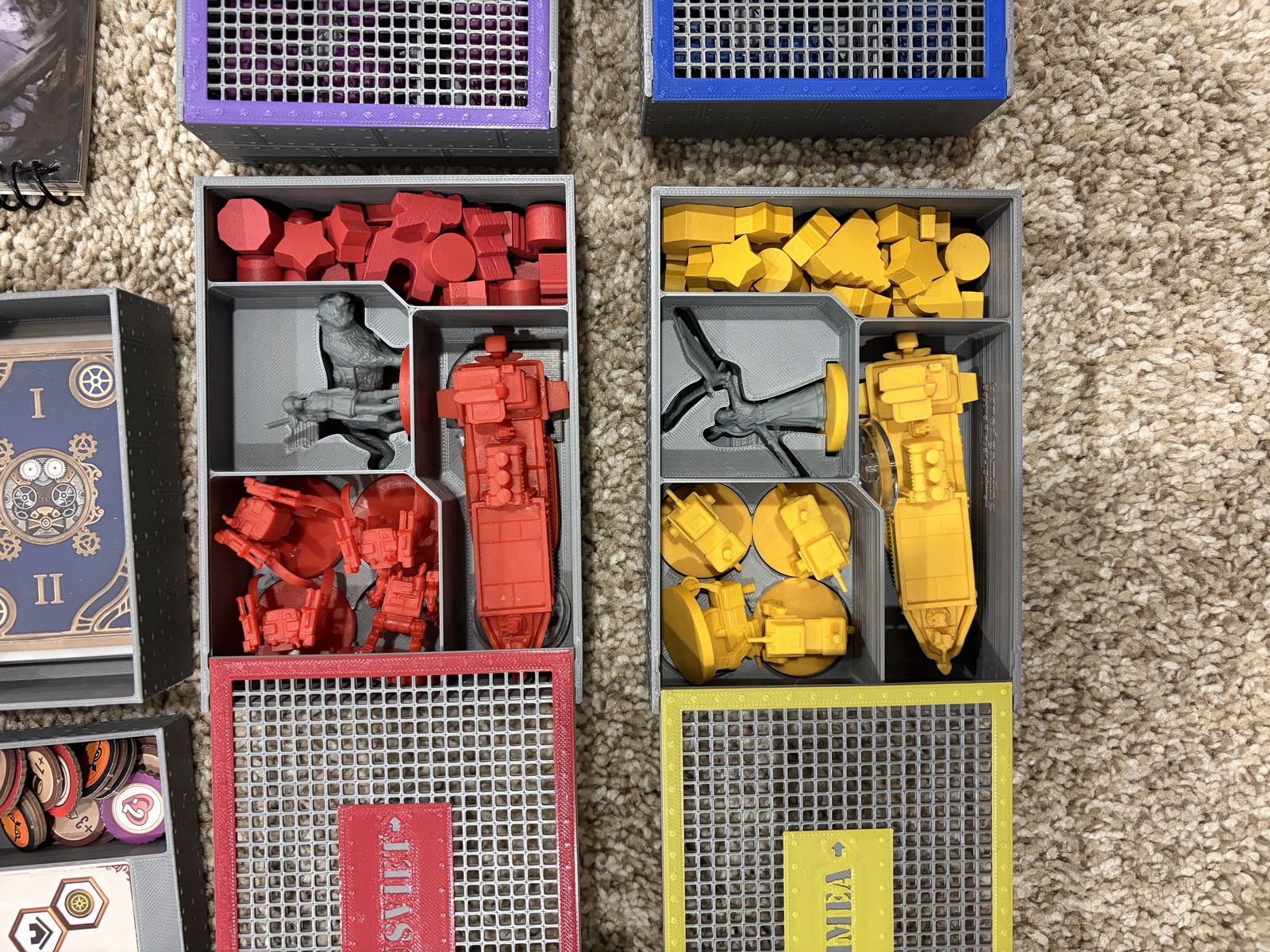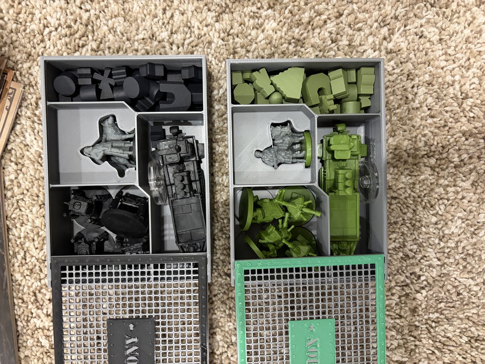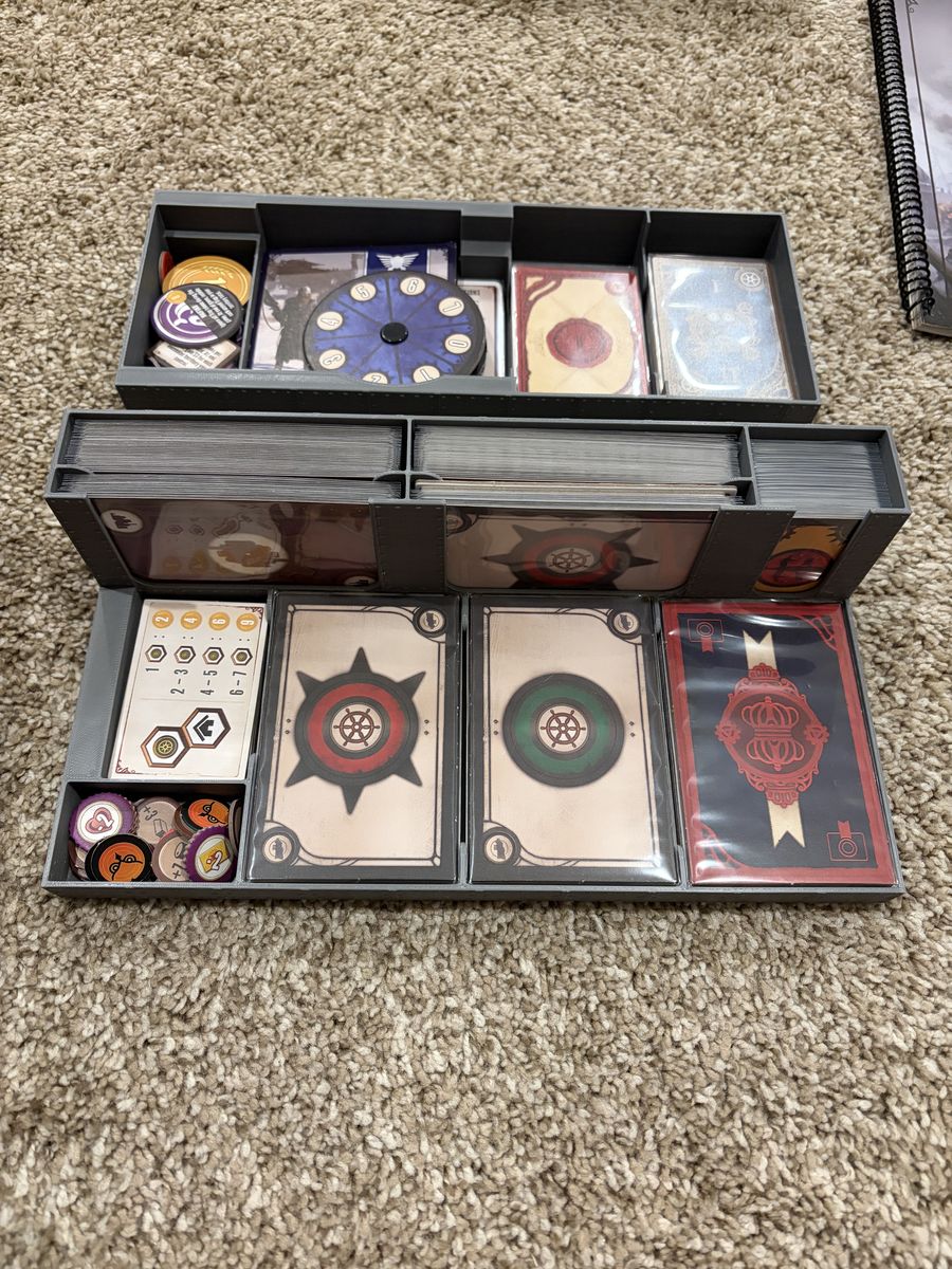 This is a very well taken care of collector’s item edition of the game. I bought it brand new. Upon receiving it, I immediately put sleeves on all cards to protect them, bought an organizer to protect all models and items, and have stored it in a cool dry place without any dust, water, etc.