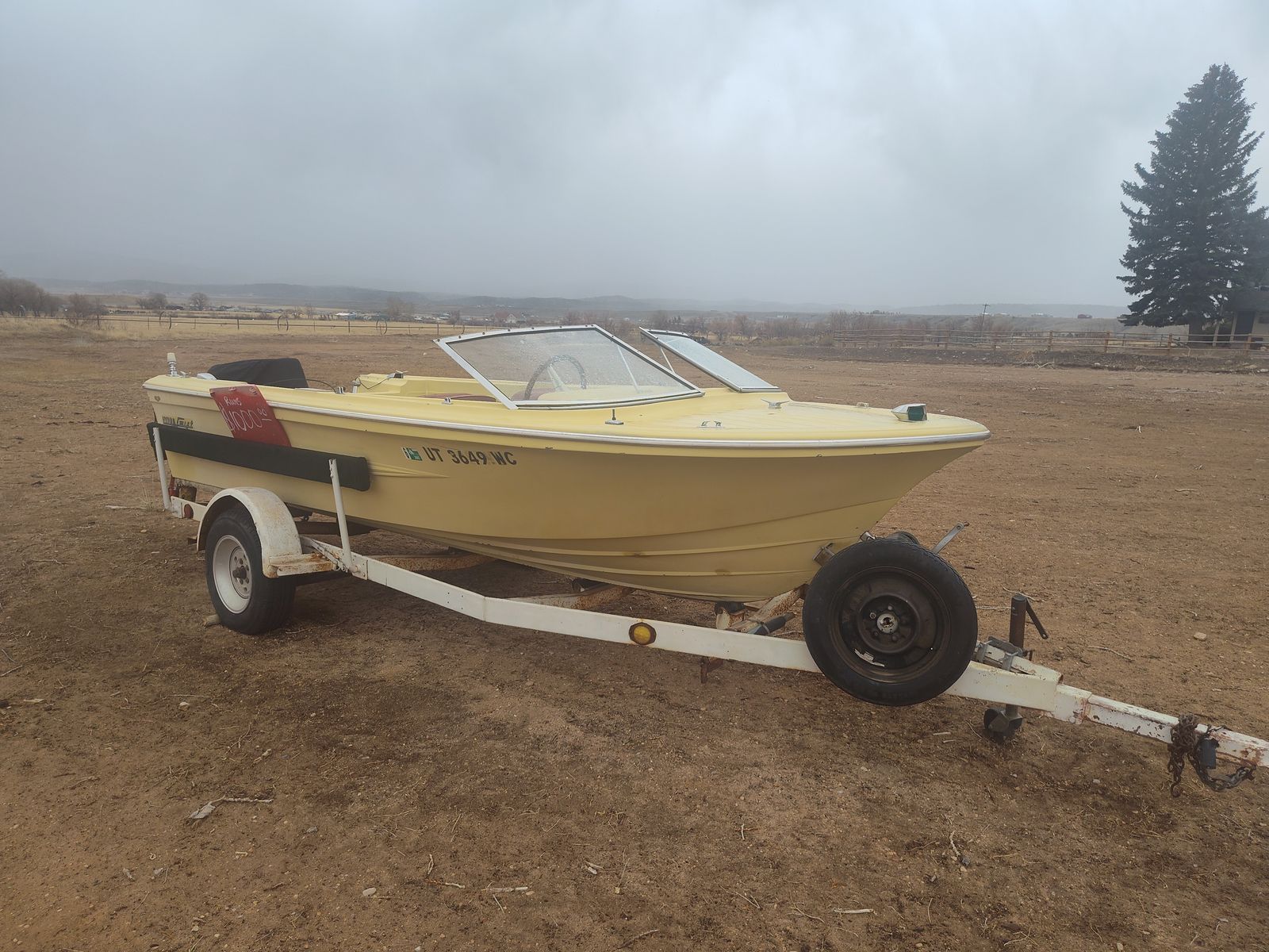 Nice little boat,good body good floor, running 85HP 2 stroke outboard engine,lights work,come with trailer and paperwork, located in Manila Utah,only $700 and a little negotiable