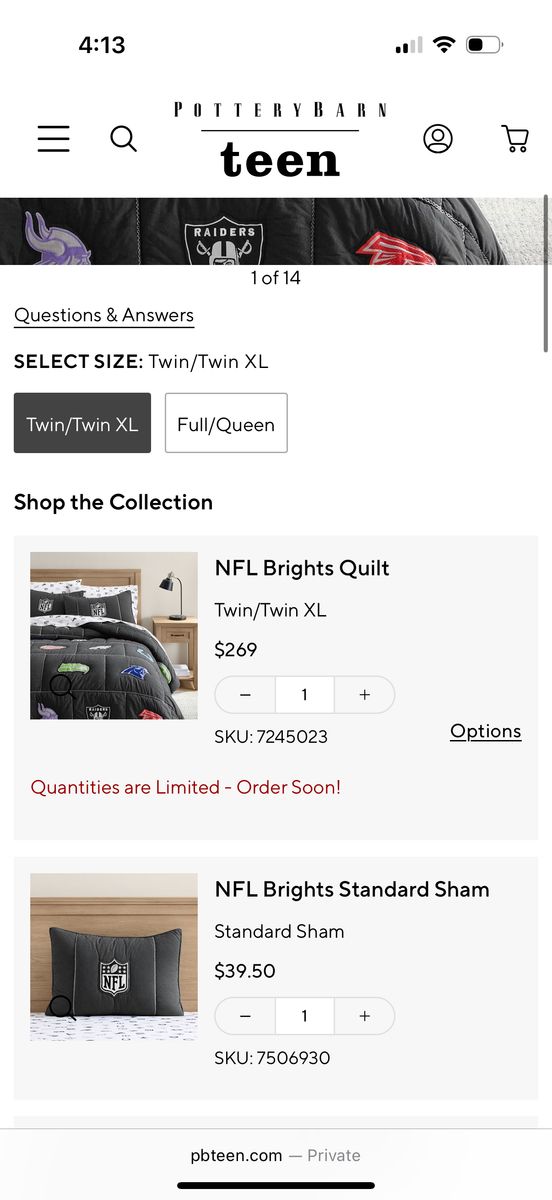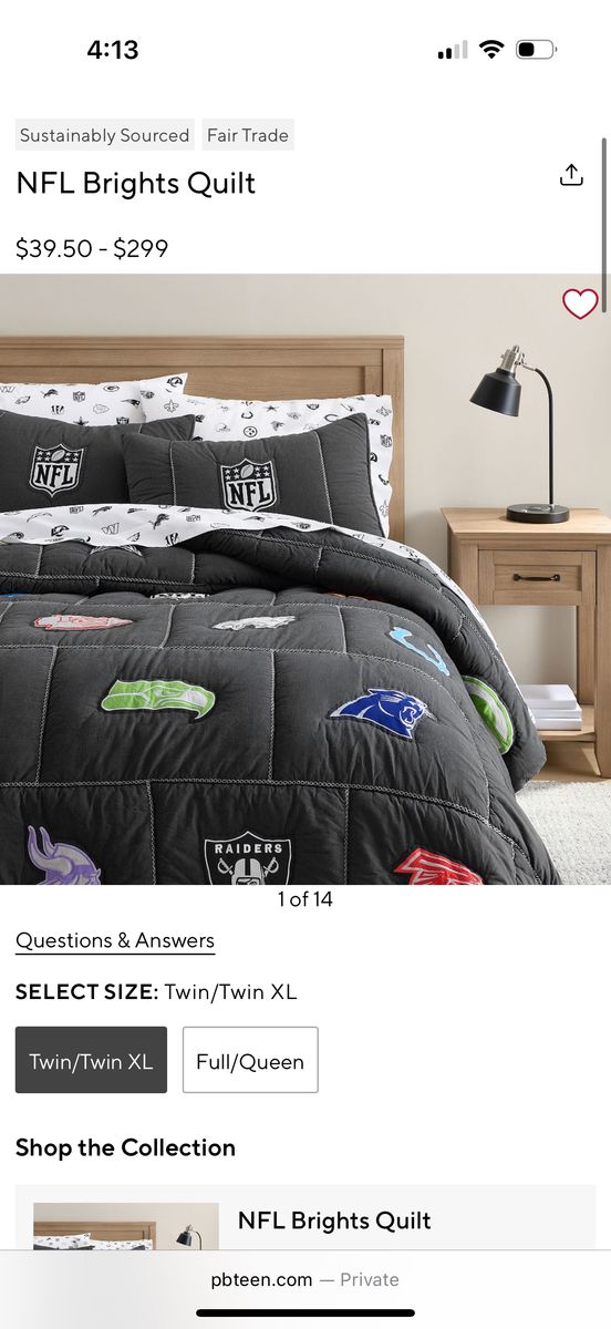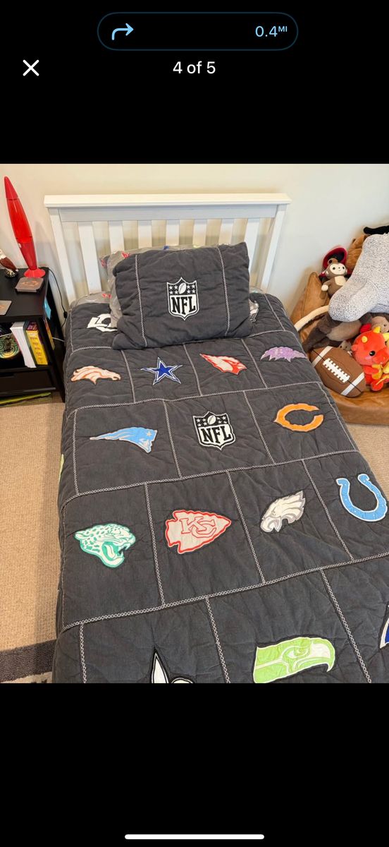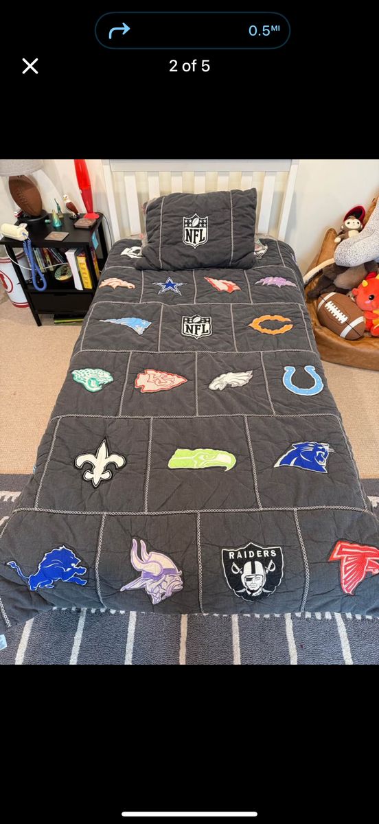 Twin/twin xl nfl quilt , in great condition , comes with 1 sham originally 270$ and 40$ for the sham ! Such great bedding and so cozy !
