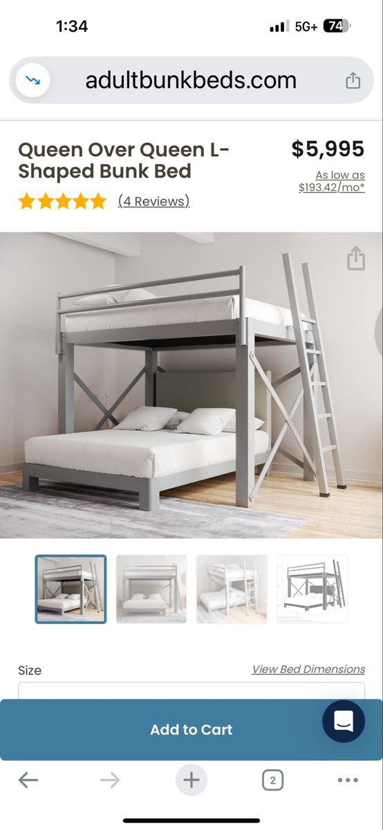 VenmoCustom queen-over-queen bunk bed designed for adults, built with heavy-duty anodized aluminum construction. Extremely sturdy and far higher quality than typical retail bunk beds.