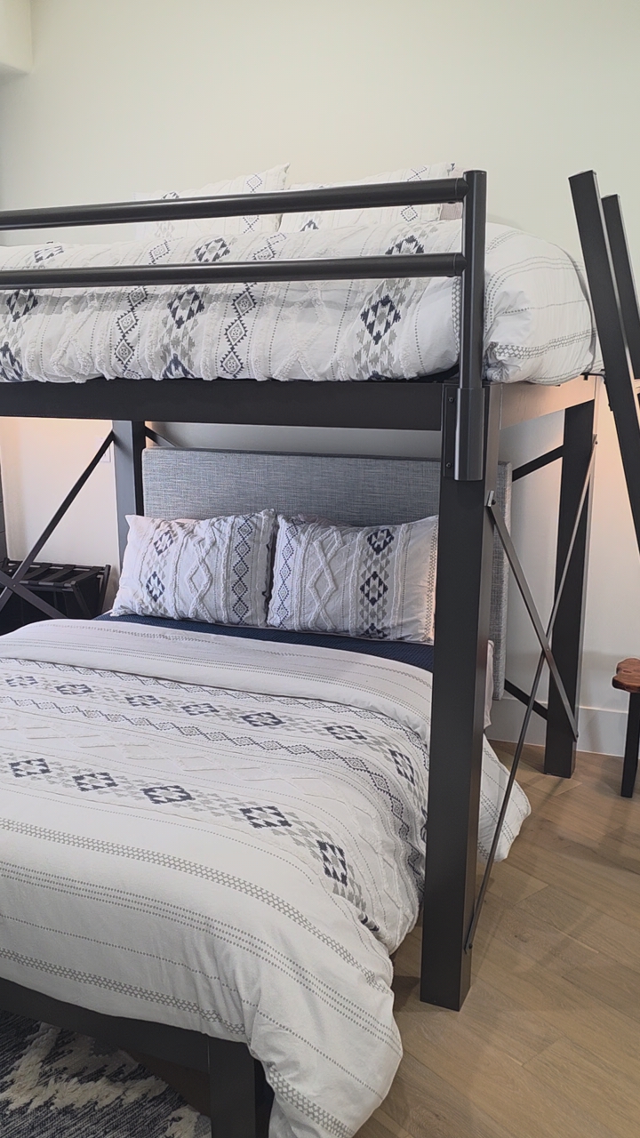 • Custom queen-over-queen aluminum bunk bed frame
