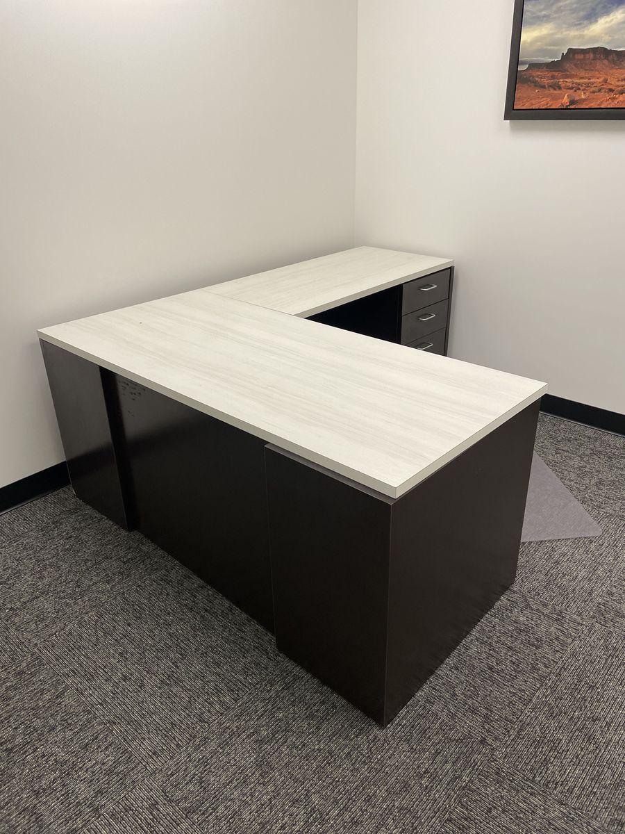 VenmoOur Corporate office recently moved and decided to get matching desks. We only have two of these desks and one didn't make the move as well as we would have liked. It still goes together well, but one of the pieces of the privacy skirt, cracked (pressboard material). We found a soft mallet did wonders to put the pieces back together with only a small seam visible. The other desk is in great condition.