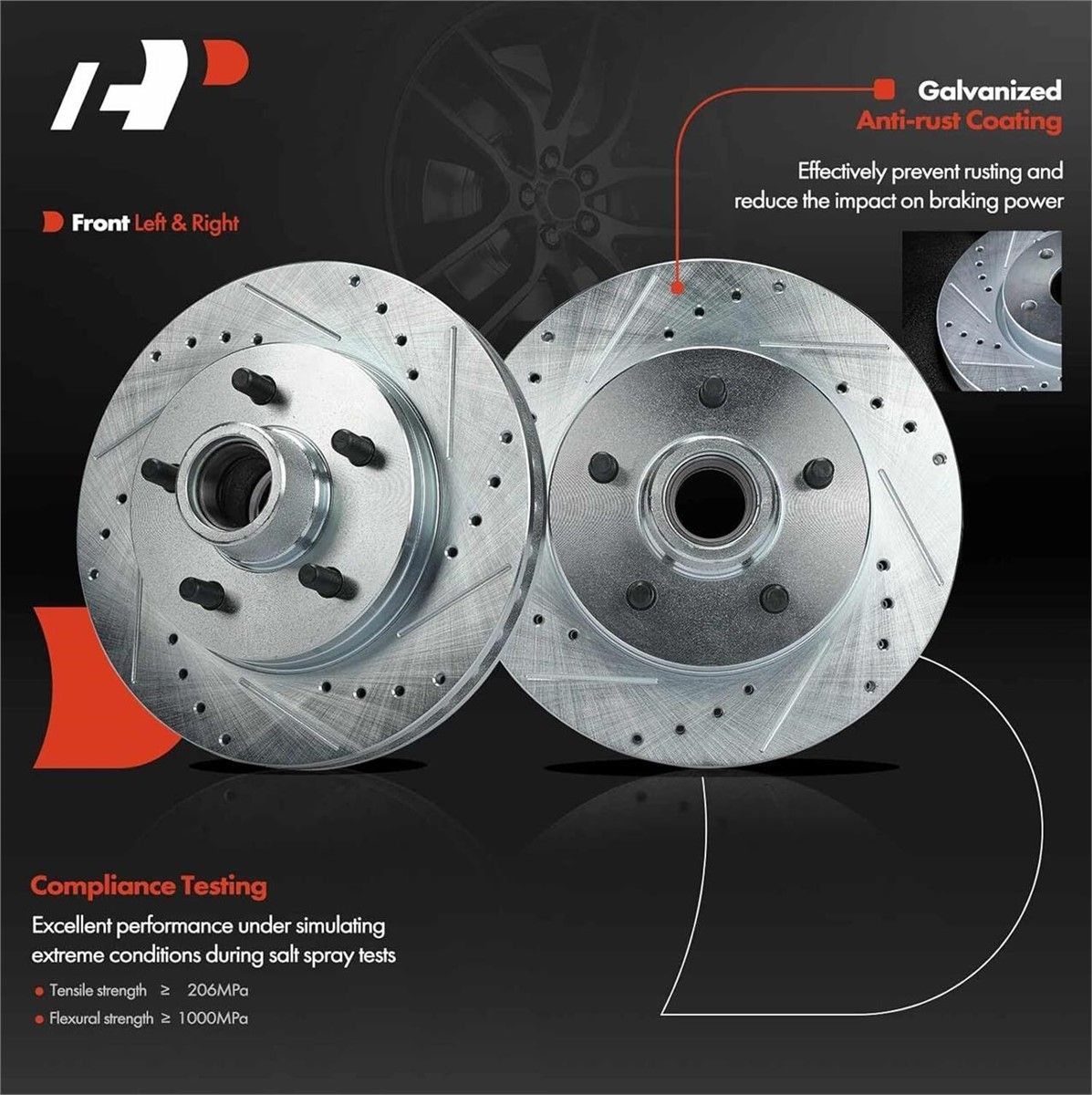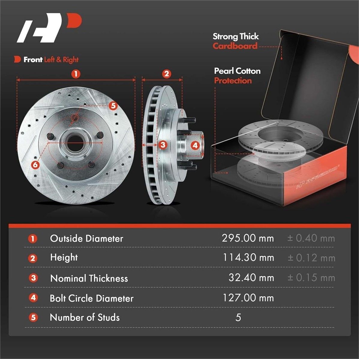 Perfect Fitment: Compatible with Chevrolet C1500 1995-1999 2WD C1500 Suburban 1994-1999 V8 5.7L (Except 4 Wheel/All Wheel Drive) Express 1500 1996-2002 Tahoe 1995-1997 V8 5.7L (Except 4 Wheel/All Wheel Drive) Tahoe 1998-1999 V8 5.7L (Except 4 Wheel/All Wheel Drive Without Police Package); Compatible with GMC C1500 1995-1999 2WD C1500 Suburban 1994-1999 V8 5.7L (Except 4 Wheel/All Wheel Drive) Savana 1500 1996-2002 Yukon 1995-1999 V8 5.7L (Except 4 Wheel/All Wheel Drive) Reference Number: The A-Premium Drilled and Slotted Disc Brake Rotors' reference number: S-5595 S5595 + Disc Brake Pads' reference number: P-369 P369--- Fit for Front Left and Right Driver and Passenger Side; Please enter your vehicle information in the top left corner of listing and check our "Special Note" before ordering Specification: ROTORS: Material: G3000 Metallurgy Mounting Bolt Hole Quantity: 5 Outside Diameter (mm): 295 Discard Thickness (mm): 30.86; PADS: Material: Ceramic Thickness (mm): 16.6(Inner) 15.7(Outer) Package Details: 2x Drilled and Slotted Disc Brake Rotors + 4x Disc Ceramic Brake Pads + Brake Lubricant (High-temperature Grease) + Installation Hardware. Complete kit purchase for more time-saving and peace of mind.