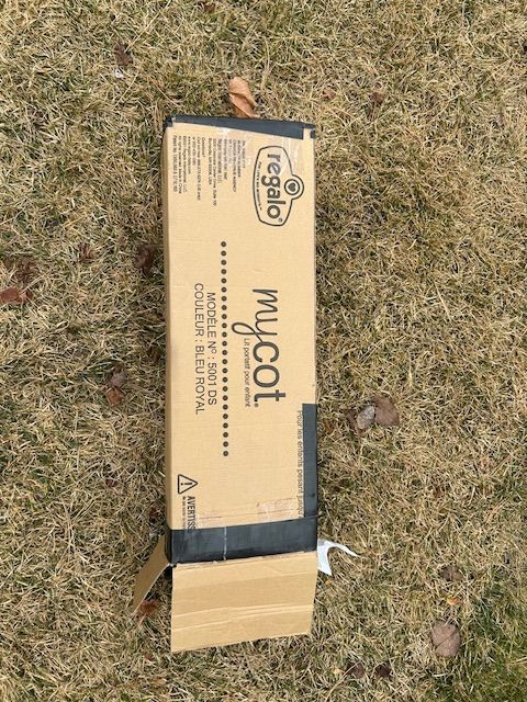 Venmo$20 OBO. This is a new Regalo My Cot portable toddler bed. Built with an all-steel frame, the cot is designed for durability and can support children weighing up to 75 pounds. It offers a comfortable sleep surface measuring 48 inches long by 24 inches wide by 9 inches high, lined with sturdy canvas material. Suitable for children aged 2-5 years, this multi-functional cot is perfect for nap time, picnics, and various other activities. A fitted sheet is included to enhance comfort for your little one while resting or playing. Let me know if you have any questions. Text is best.