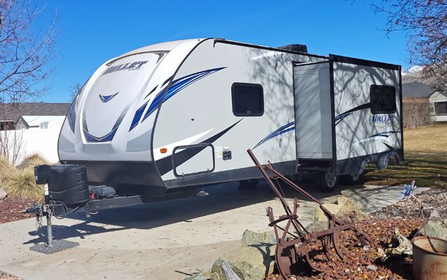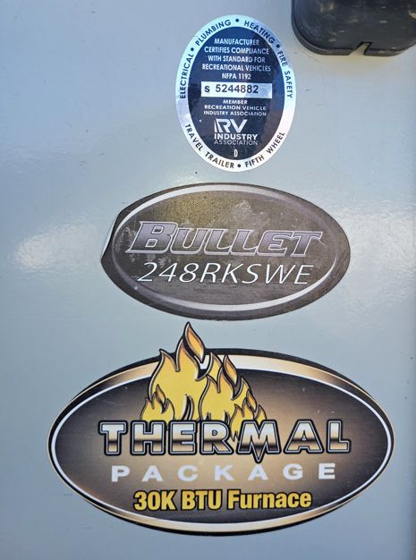 Keystone Bullet Model 248RKSWE Ultralite Travel Trailer, used very little, and stored under cover.Deluxe 12" new matress in master bedroom. Two entry doors, Deluxe model, with bluetooth stereo, with outdoor speakers, outdoor shower, 28"TV, electric awning with lighting, microwave with 3 burner stove, loads of cabinets, with plenty of outdoor storage, with many acessories, and kitchen cookware, and deluxe towing package is negotiable. Text or call me at 4357579123.