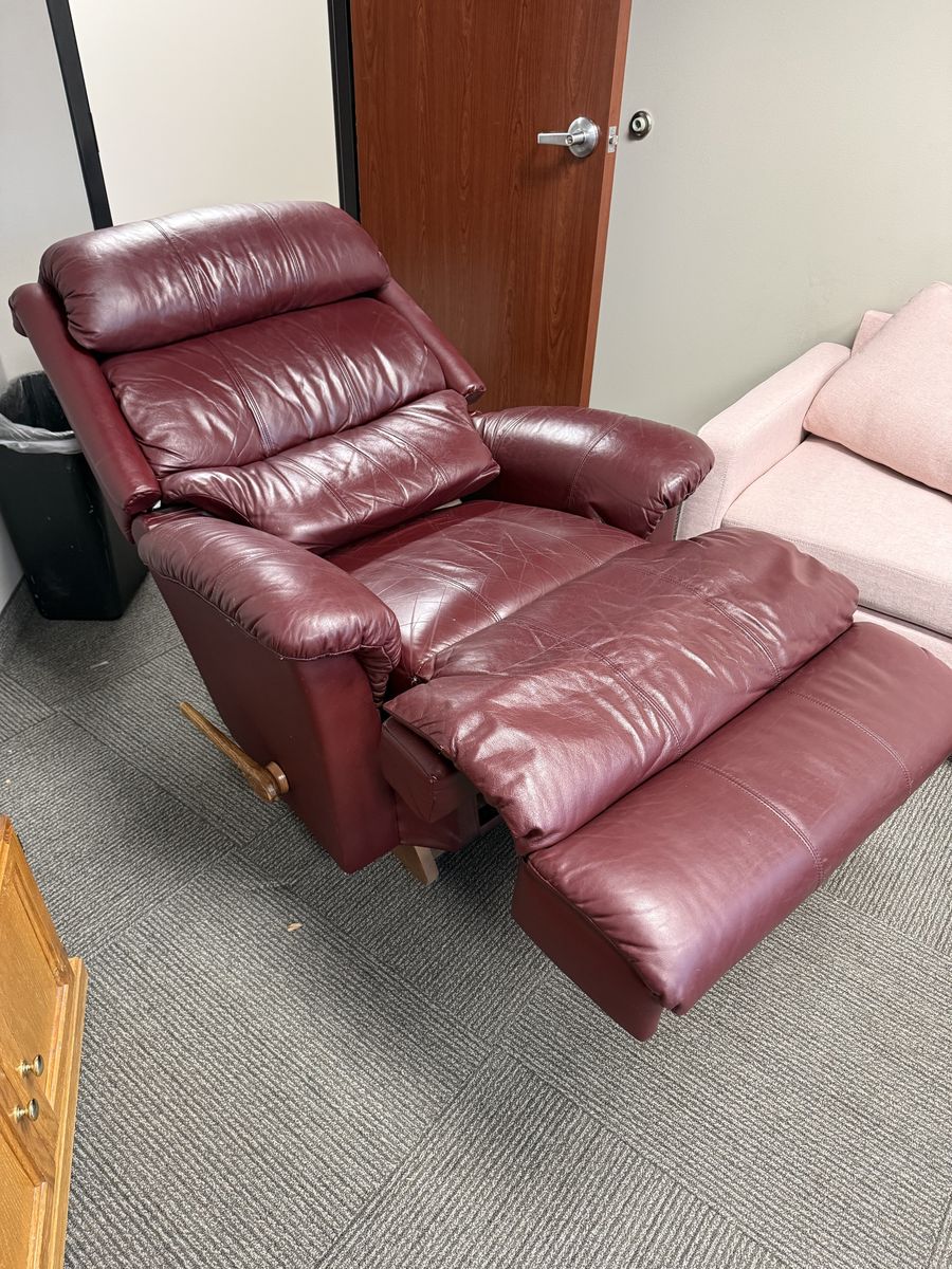ApplePayBeautiful red leather recliner for sale, light wear, minimal scuffs on the left hand side. No other visible damage. Fully functional.