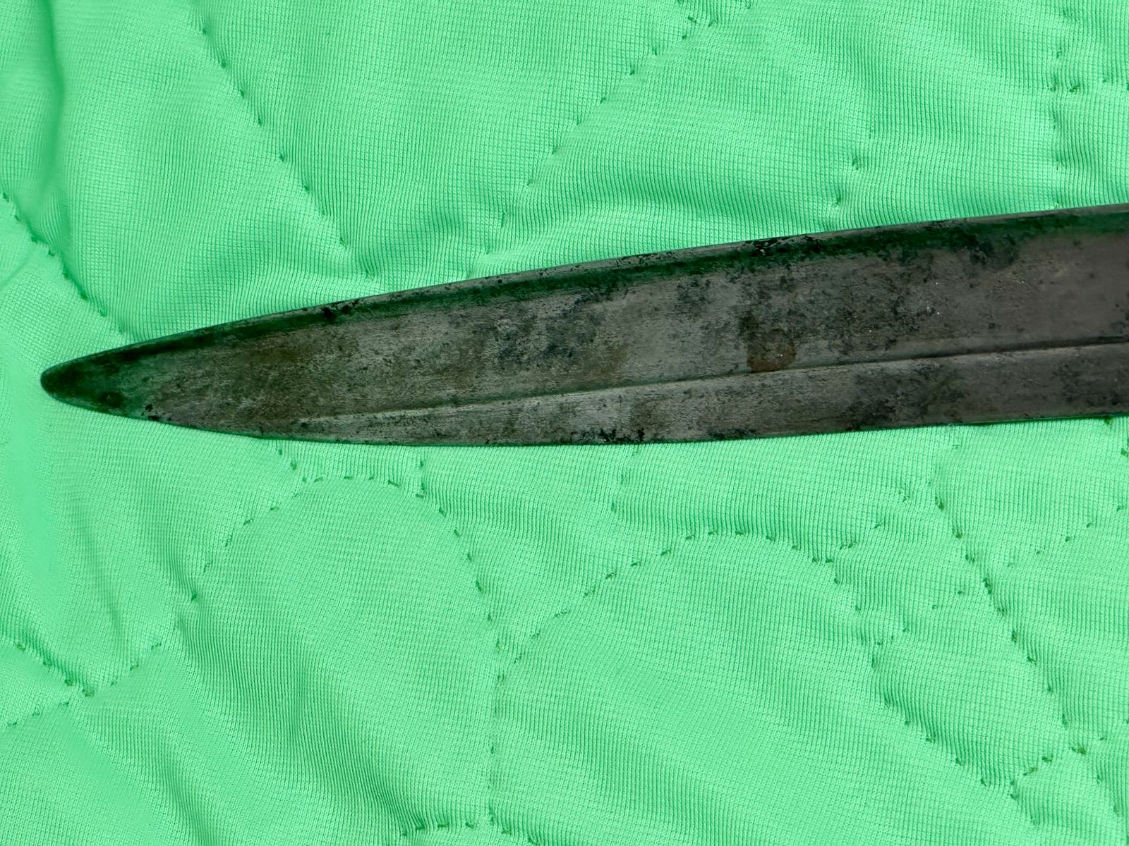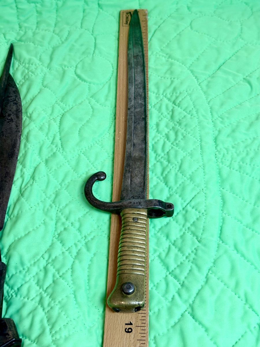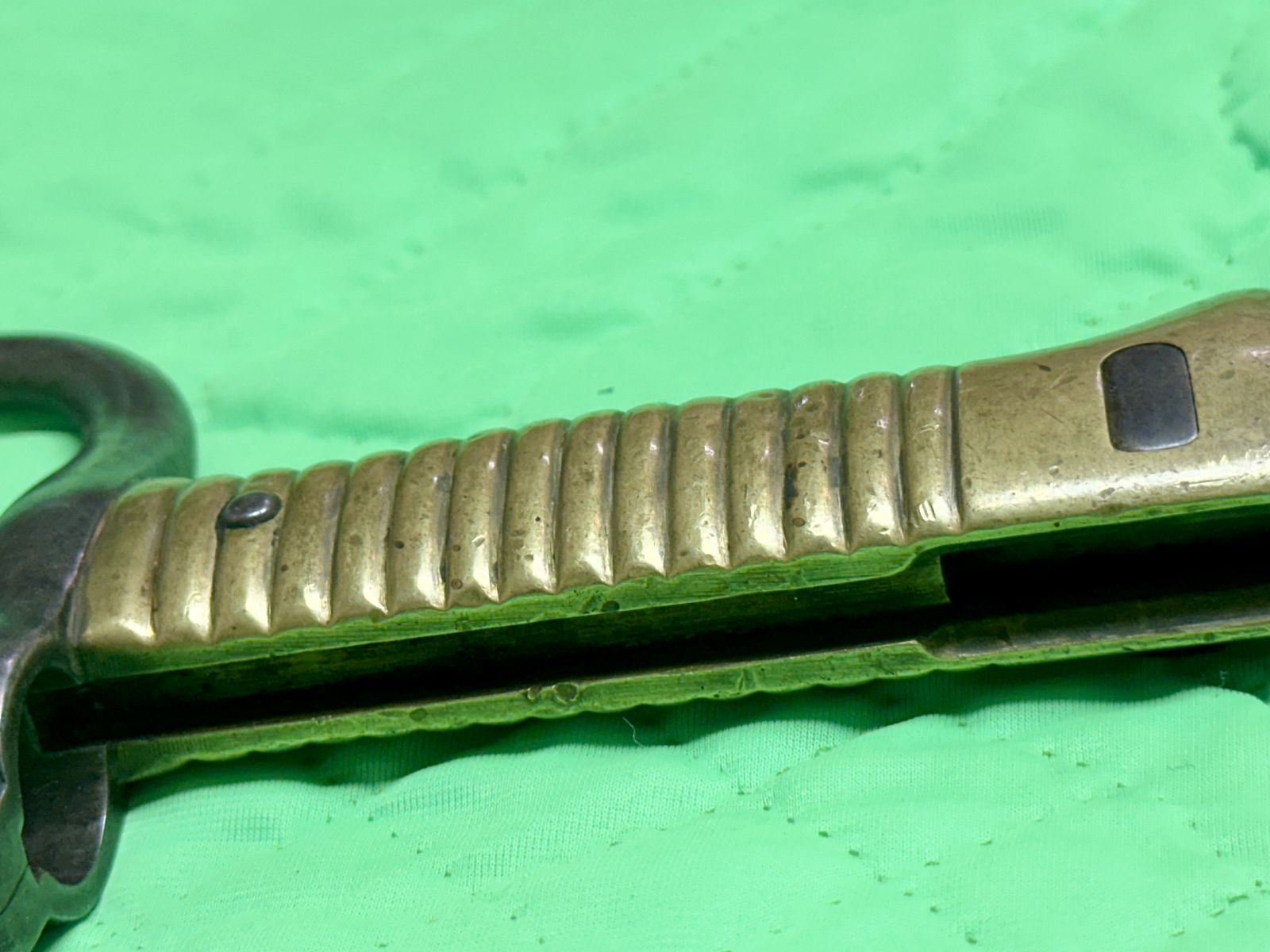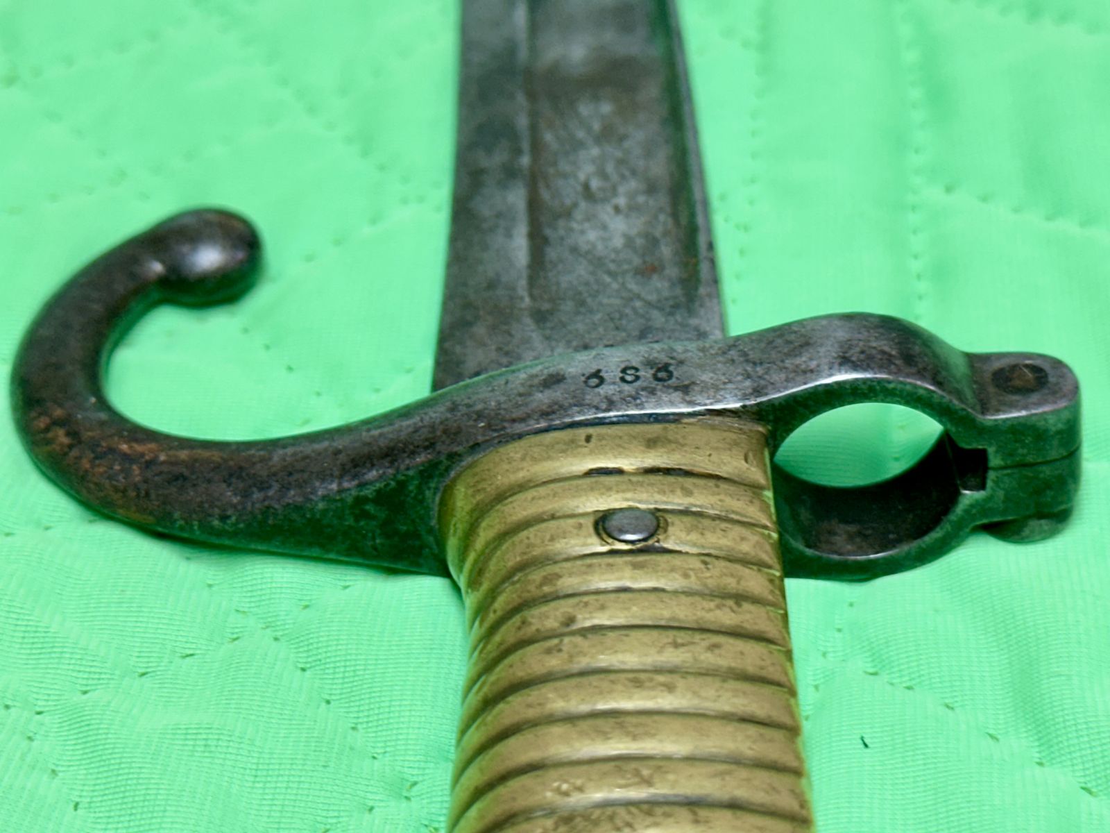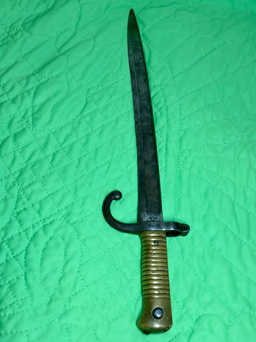 Lots of patina. Different markings and numbers on the sword. A beautiful piece of history. Only if it could tell its story!