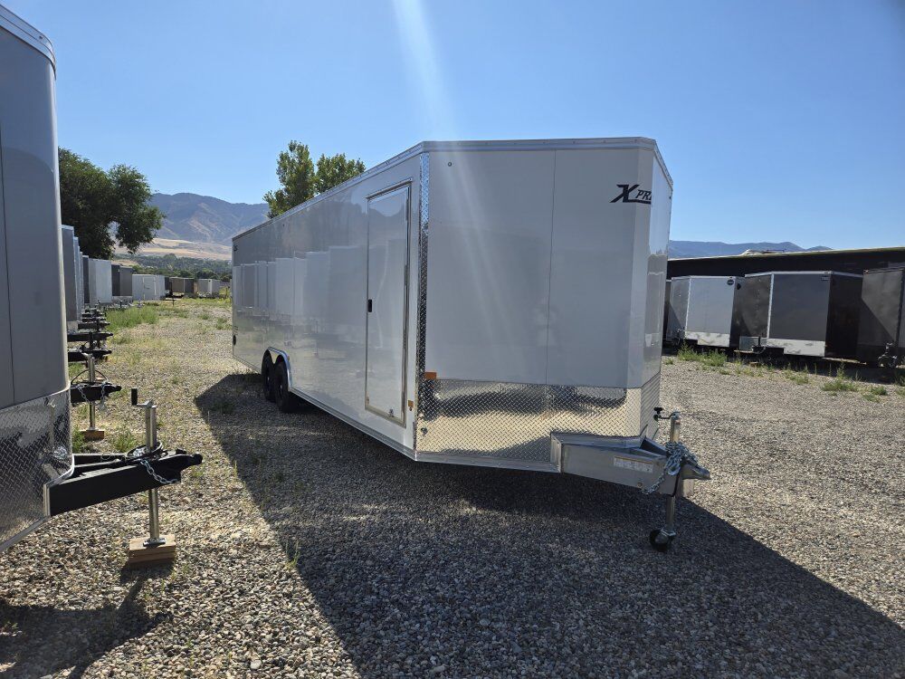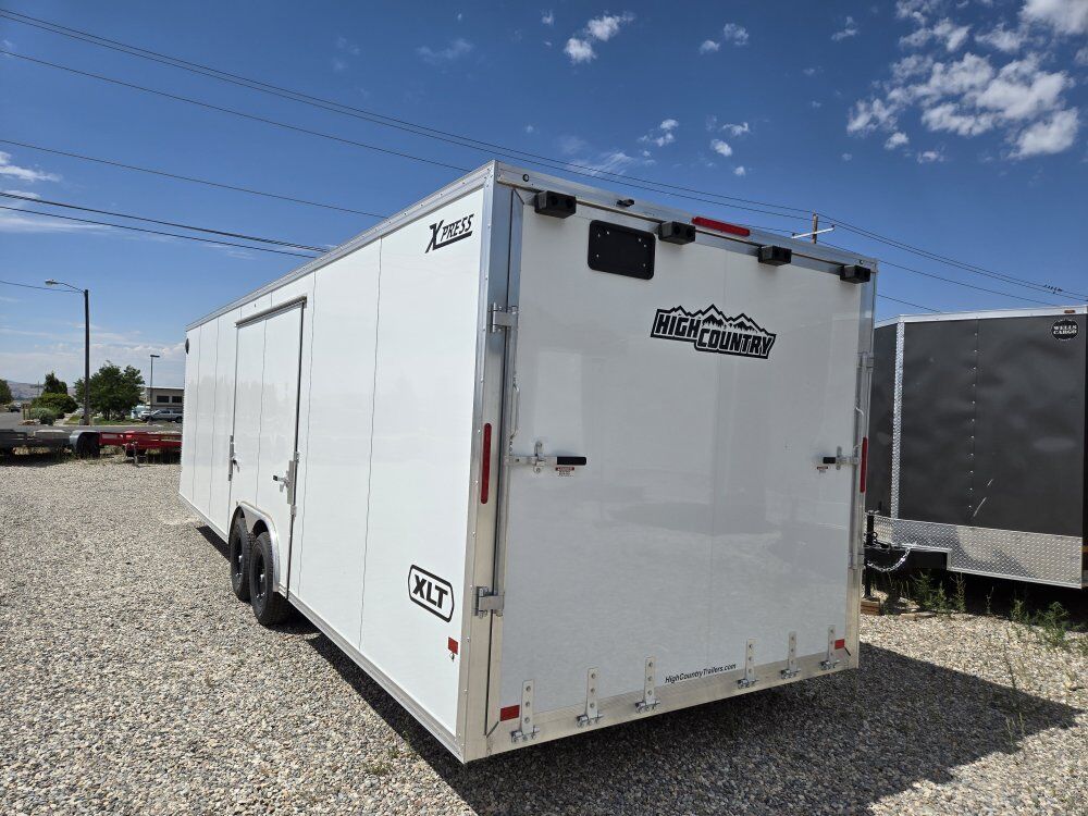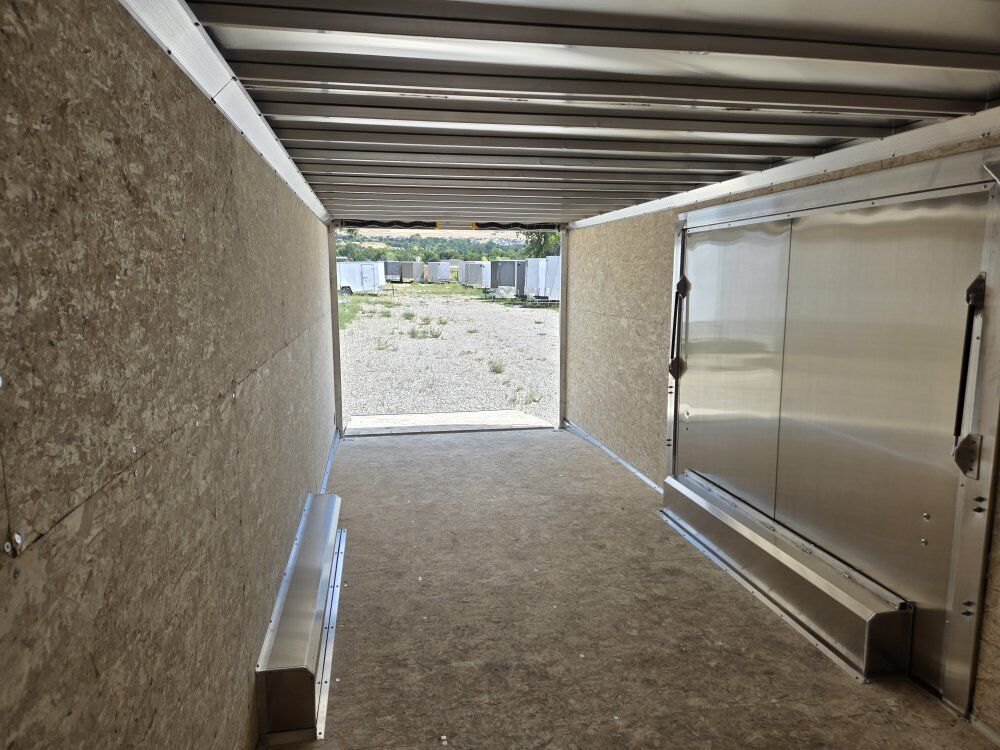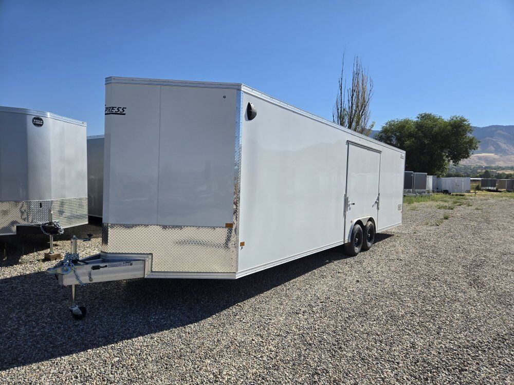NEW ALCOM EXPRESS 8.5X28 ENCLOSED CAR HAULER WITH 7FT INTERIOR HEIGHT AND REAR RAMP DOOR WITH 81IN OPENING HEIGHT. -------------------------------INCLUDED FEATURES----------------------------- 8.5X28 ALUMINUM CAR HAULER, MODEL XPRESS 8.5X28-IF CH ALL ALUMINUM CONSTRUCTION, BONDED ALUNINUM EXTERIOR ((( NO SCREWS )))RV STYLE SIDE DOOR, HD REAR RAMP DOOR WITH 81IN OPENING HEIGHT AND 24IN RAMP EXTENSION, 4 FT BEAVERTAIL, ELITE ESCAPE DOOR WITH REMOVABLE FENDER, ((( DRIVER'S SIDE ))) $2000. OPTION 16IN. ON CENTER FRAMING ON WALL, FLOOR AND ROOF, TANDOM 52OO# AXLES, BRAKES ON ALL WHEELS, RADIAL TIRES, FLOW THRU SIDE VENTS, ALL LED LIGHTS, INTERIOR LED DOME LIGHTS, 1 PIECE ALUMINUM ROOF ((( NO SEAMS )))HEAVY DUTY RAMP DOOR BUMPERS, 3/4 INCH WATER RESISTANT INTERIOR DECKING, 3/8 INCH WATER RESISTANT INTERIOR WALL LINER, 4 YEAR LIMITED WARRANTY,