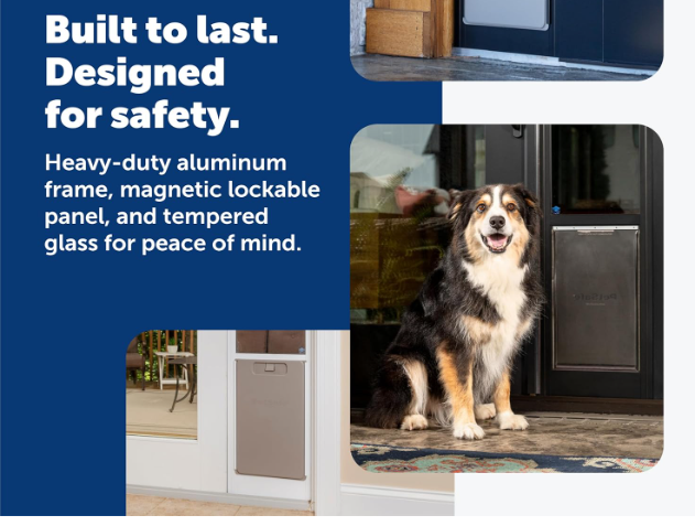 ZellePERFECT FOR APARTMENTS AND RENTAL HOMES: This rental-friendly door installs easily in 1 piece so you can easily take it with you if you and your best friend move ADJUSTABLE SIZING: The patio panel fits your existing sliding door track; adjustable 75 7/8" to 80 11/16" 5 SIZES AVAILABLE: The pet door comes in 5 different sizes for pets up to 220 lb SECURITY LOCK: The latch kit allows you to lock your sliding glass door once the pet door is in place CONTROLLED ACCESS: Use the closing panel to limit your cat or dog’s access when needed
