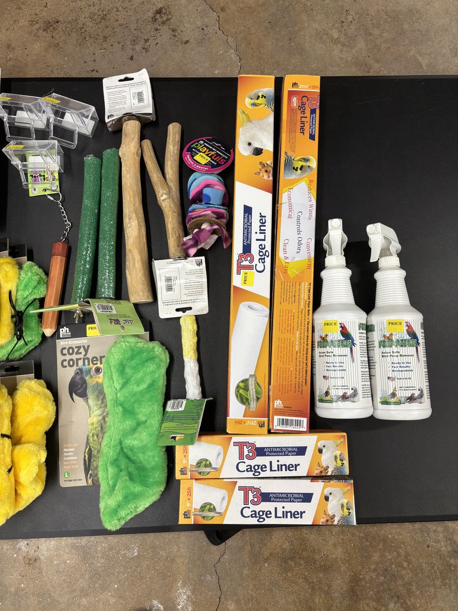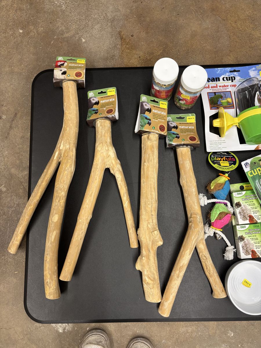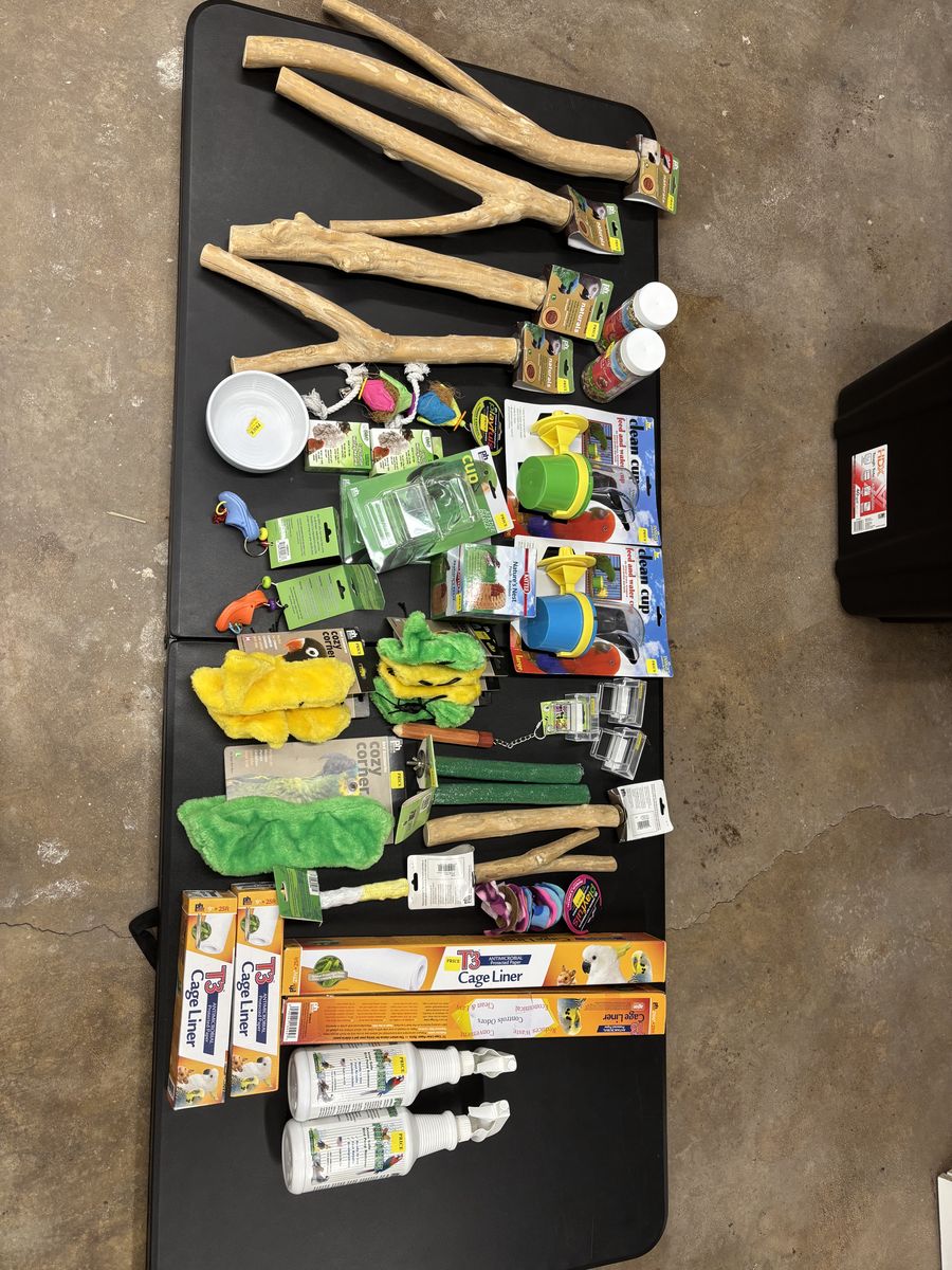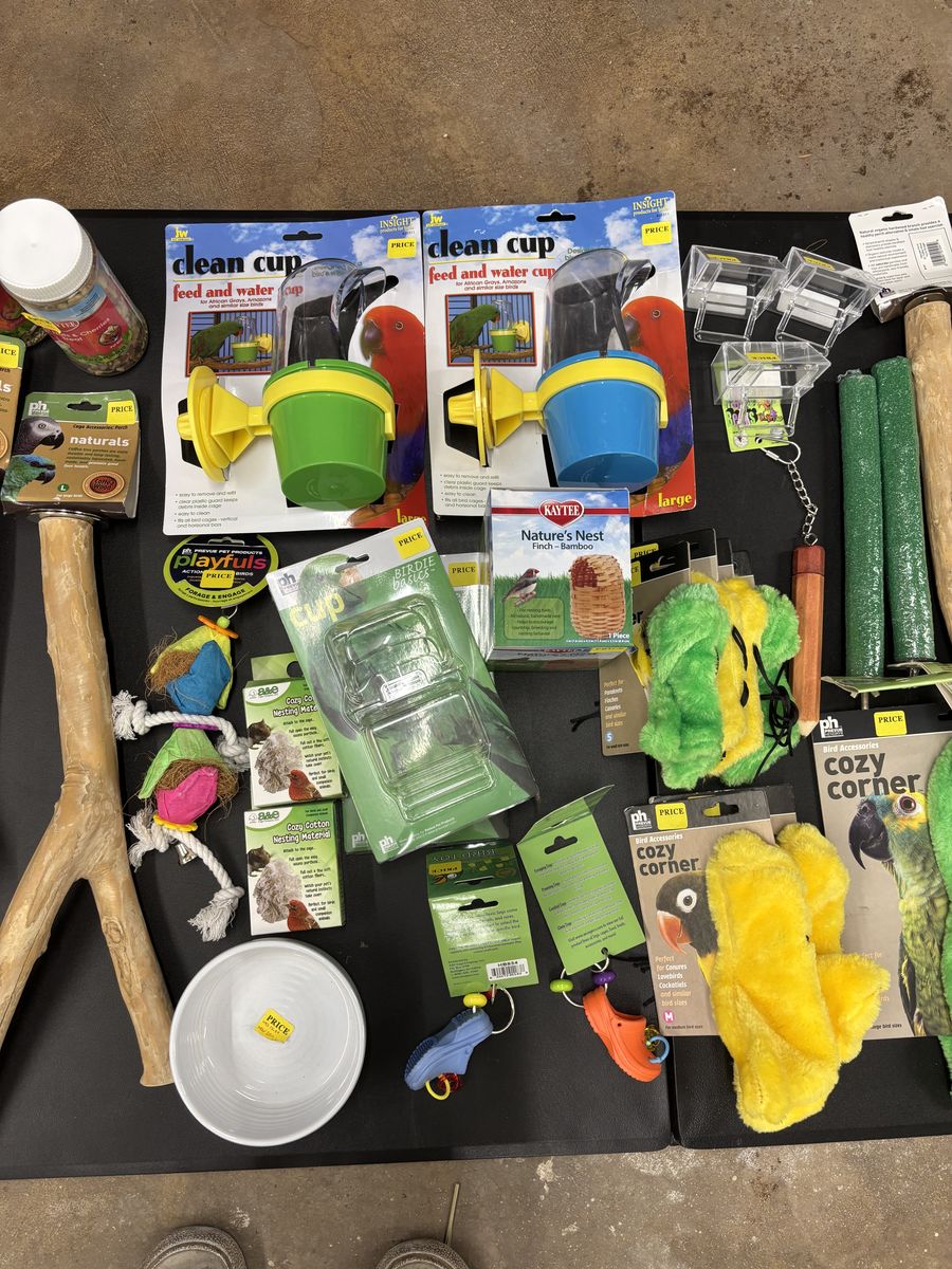 A small amount of dog products, with lots of discount bird and small mammal products.