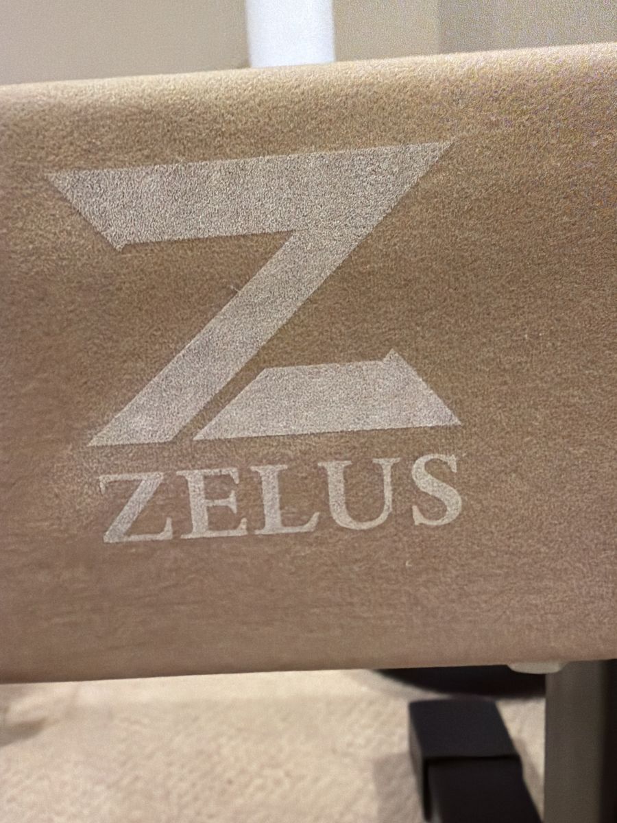 ZelleZelus brand highest setting 20 1/2inches Lowest setting 16 1/2 inches. Very steady 2 settings in between used/stored indoors only Small area of damage in corner (pictured). It was damaged this way when it was shipped to us. Metal frame, durable 8 feet length