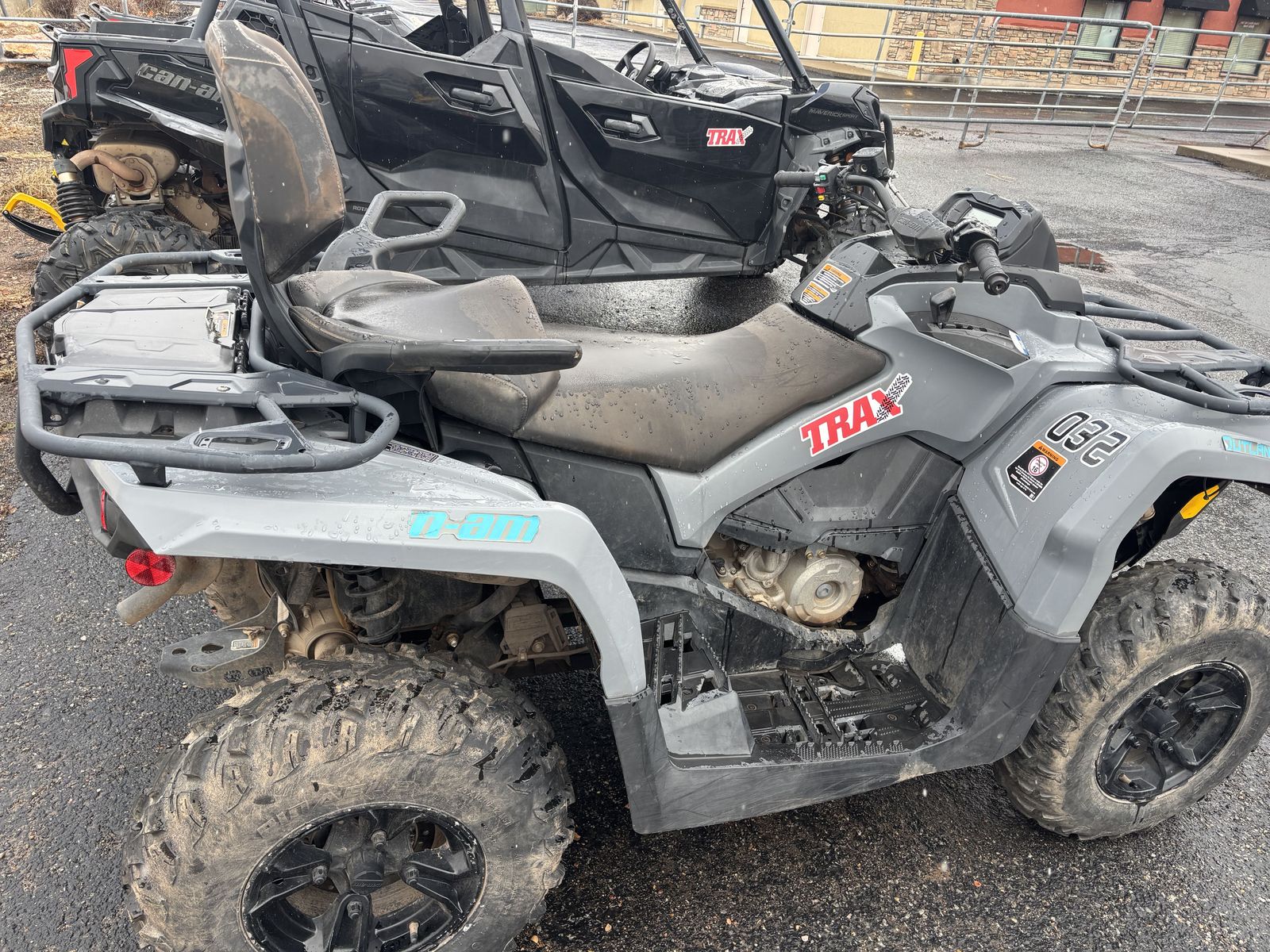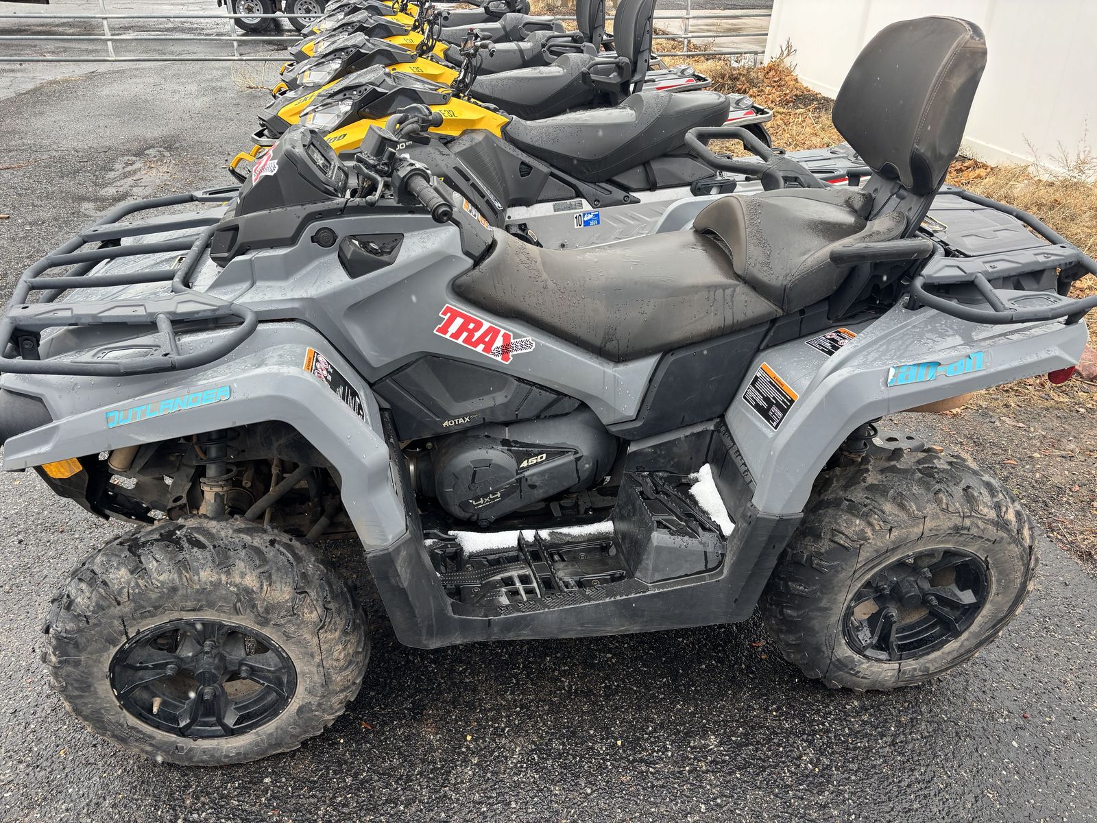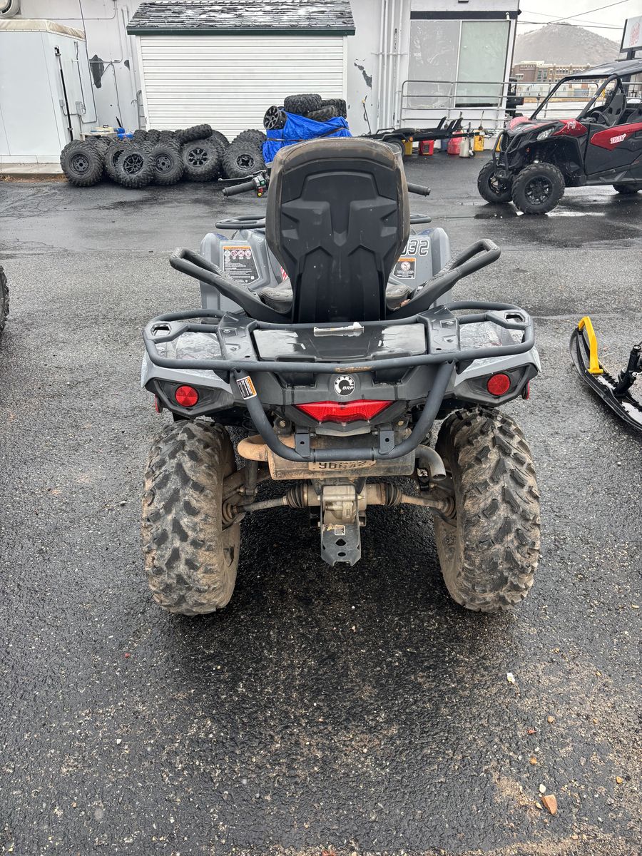 The 2023 Can-Am Outlander MAX DPS 450 is a 2 person four wheeler. Key features include a 1,300 lb towing capacity, 10.5-inch ground clearance, and 12-inch cast-aluminum wheels. It is designed for two riders with specialized passenger comfort features.