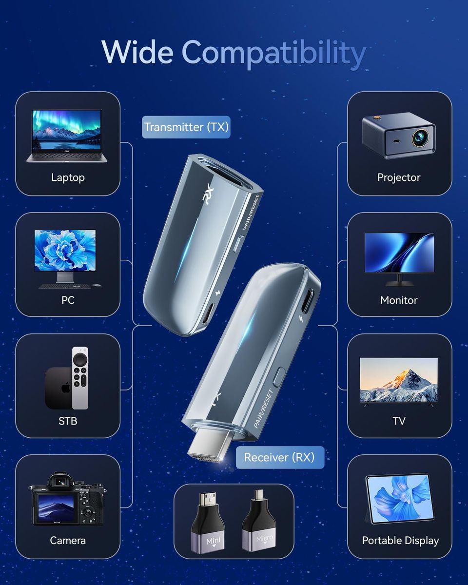 NEW IN BOX! 2026 Upgraded Wireless HDMI Transmitter and Receiver 328FT/100M, 4K Decode 1080P@60Hz Ultra HD Video Output, LED Display Plug&Play 5G+2.4G for Video and Audio to Monitor from PC/Projector/TV Box PICK UP IN WEST VALLEY CITY, UTAH!