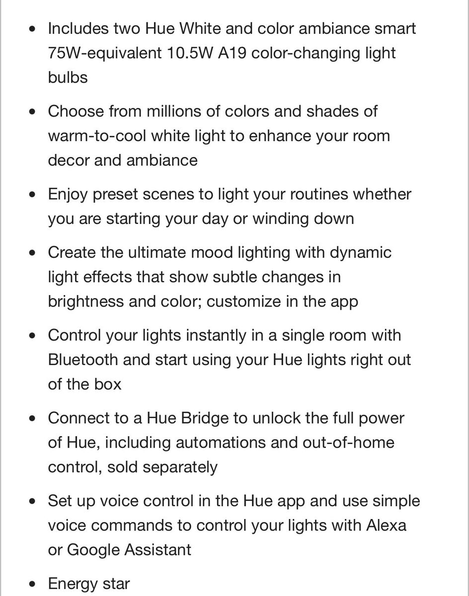• Brand new, never used • 75 -Watt • EQ A19 White and Color ambiance • Medium screw base E26 • Dimmable Smart LED General purpose Light Bulbs