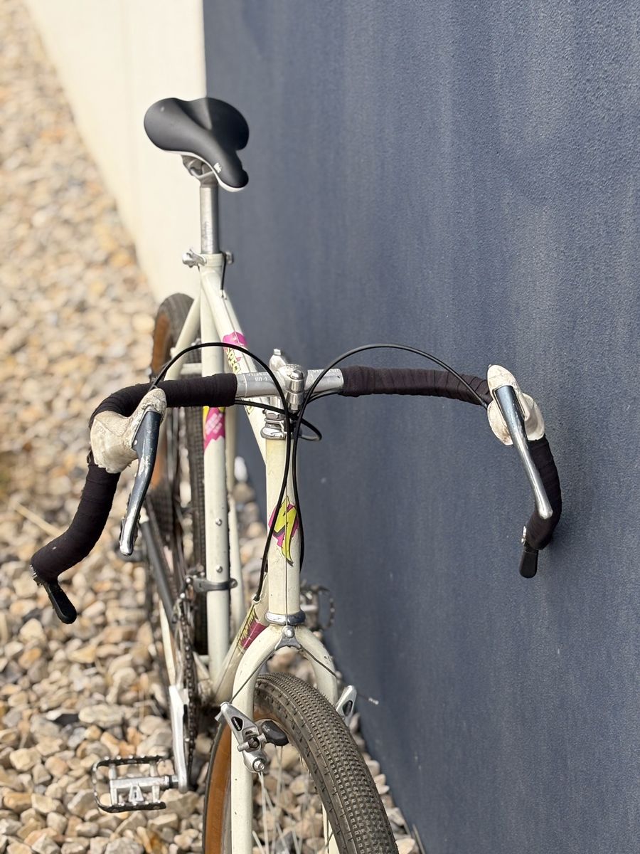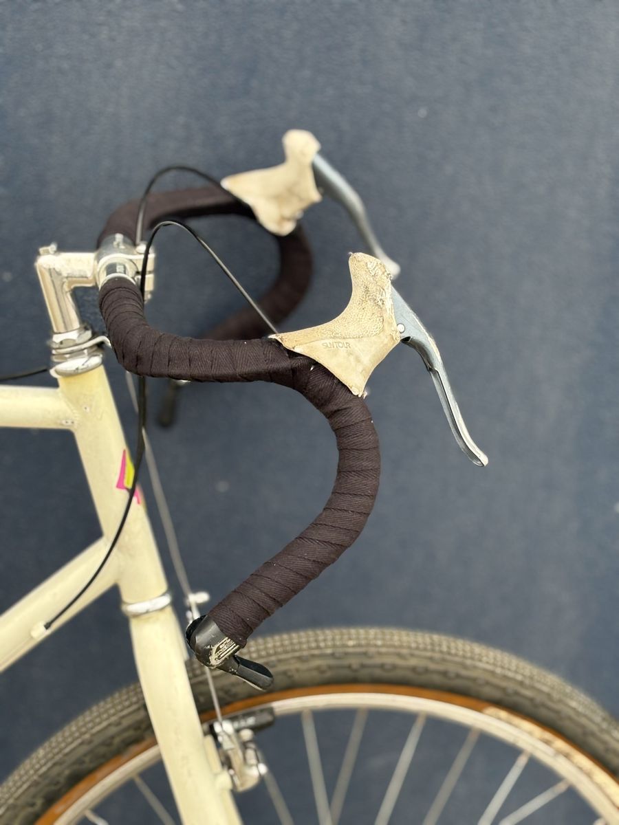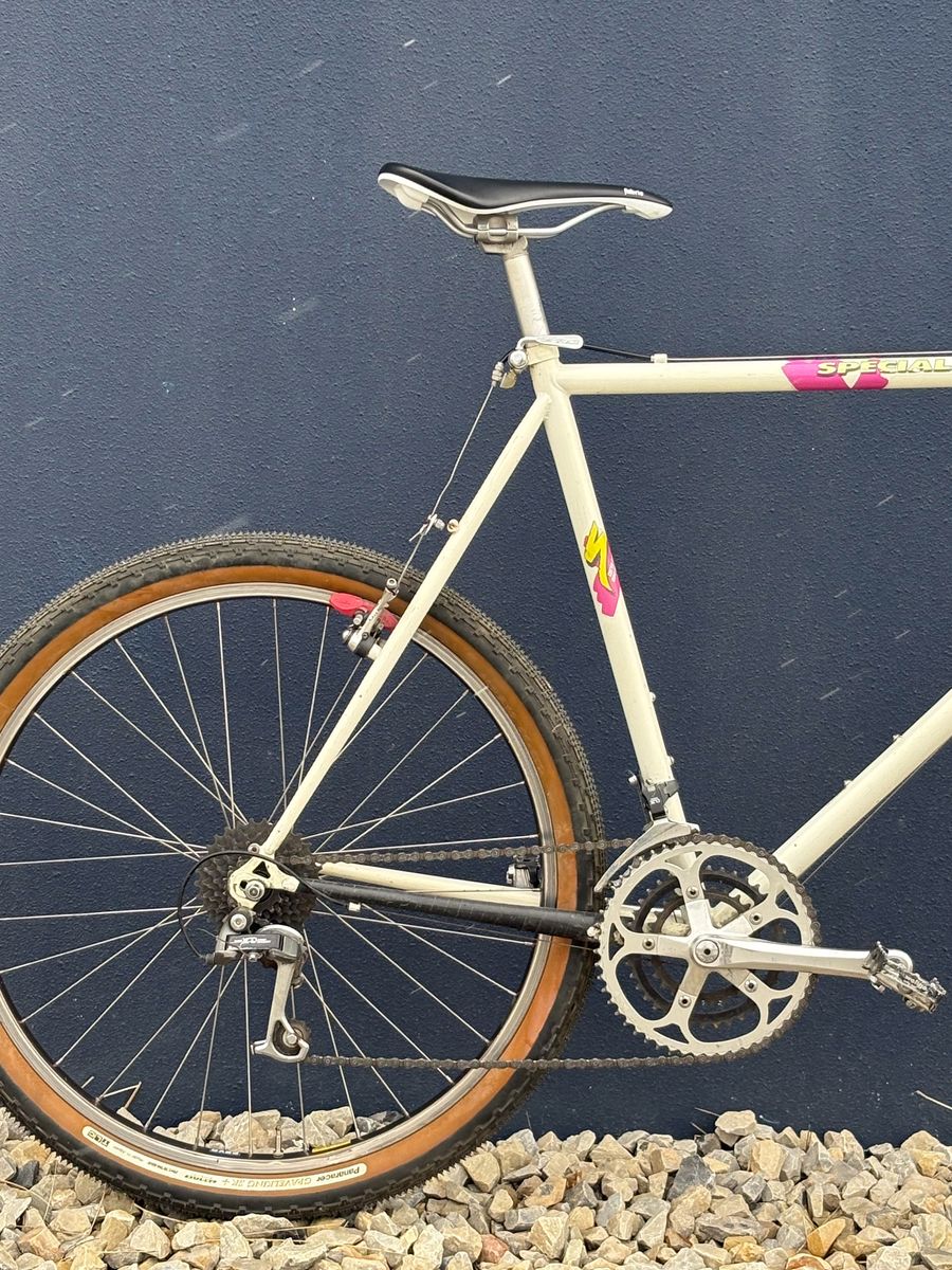 Has entire original Suntour XCD groupset, Original Specialized/Nitto BB1 flared drop bars, Specialized Flag crankset, Suntour ders, Suntour bar end shifters..