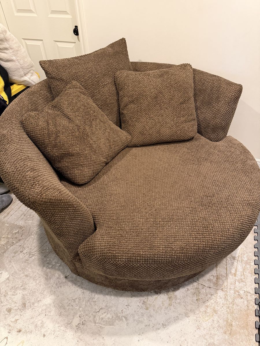 ApplePaySelling our comfy large round swivel chair. Comes with three pillows. It’s too big for the area we have it. Call or text if you’re interested. Thanks.