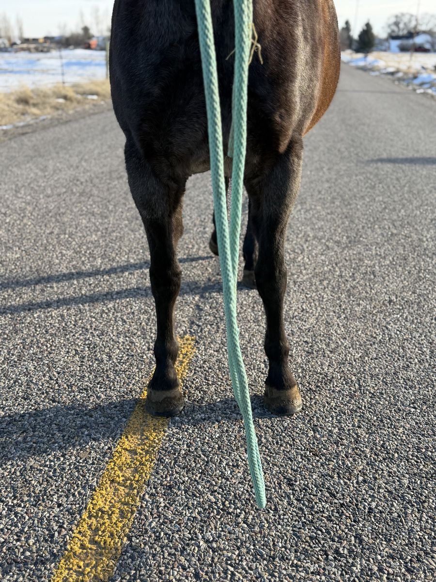 Bandit neck reins well, has a great W/T/L and stop in the arena. She has roped cattle outside and in the feedlot and knows what a full day’s work feels like. She’s been ridden off and on by a 10-year-old over the last couple of years and is safe and gentle.